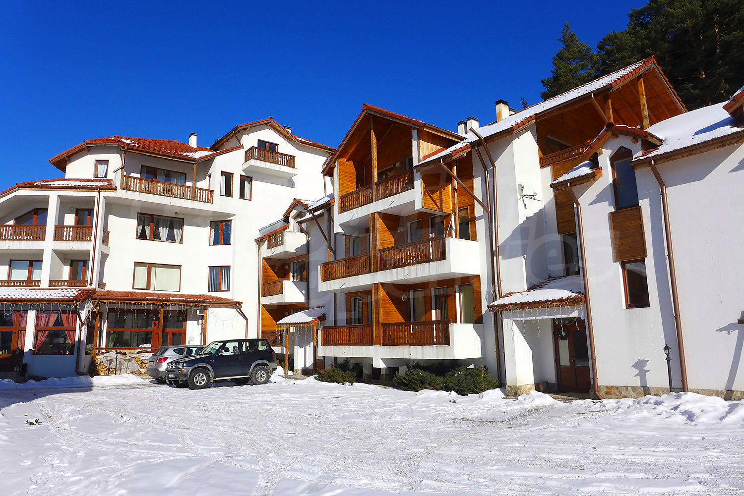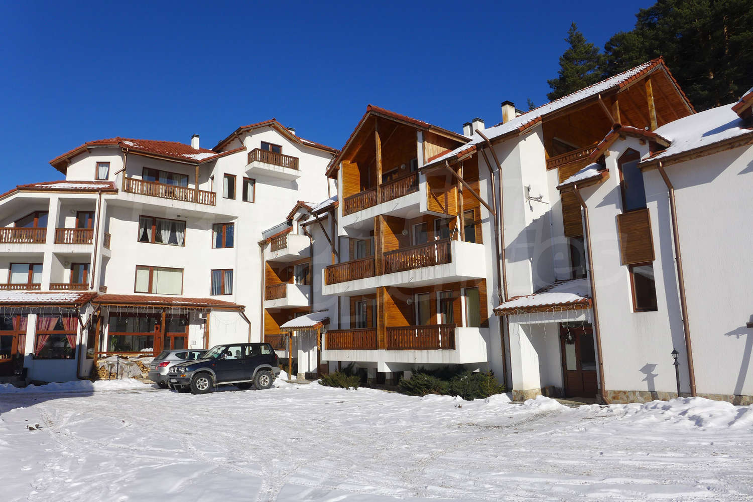 Partly furnished one-bedroom apartment in Pine Ridge gated complex, 70 km away from Sofia Airport, 8 km to Samokov bus station and 14 km to Borovets Ski Resort.