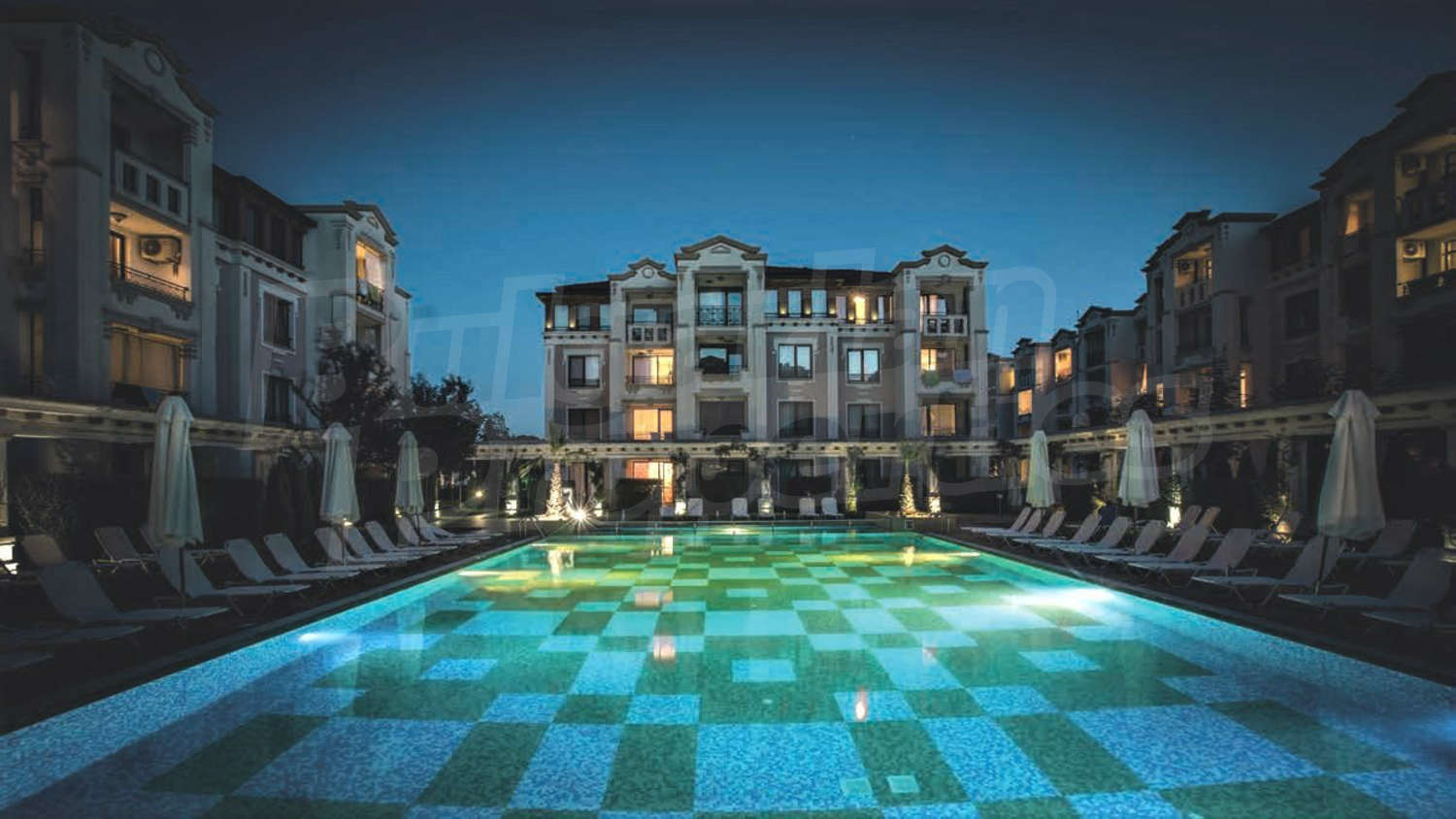The design of the complex is a Mediterranean style with some typical for the Bulgarian architectural tradition elements corresponding to the whole rich holiday ensemble that the various stages of the mini-resort encompasses.