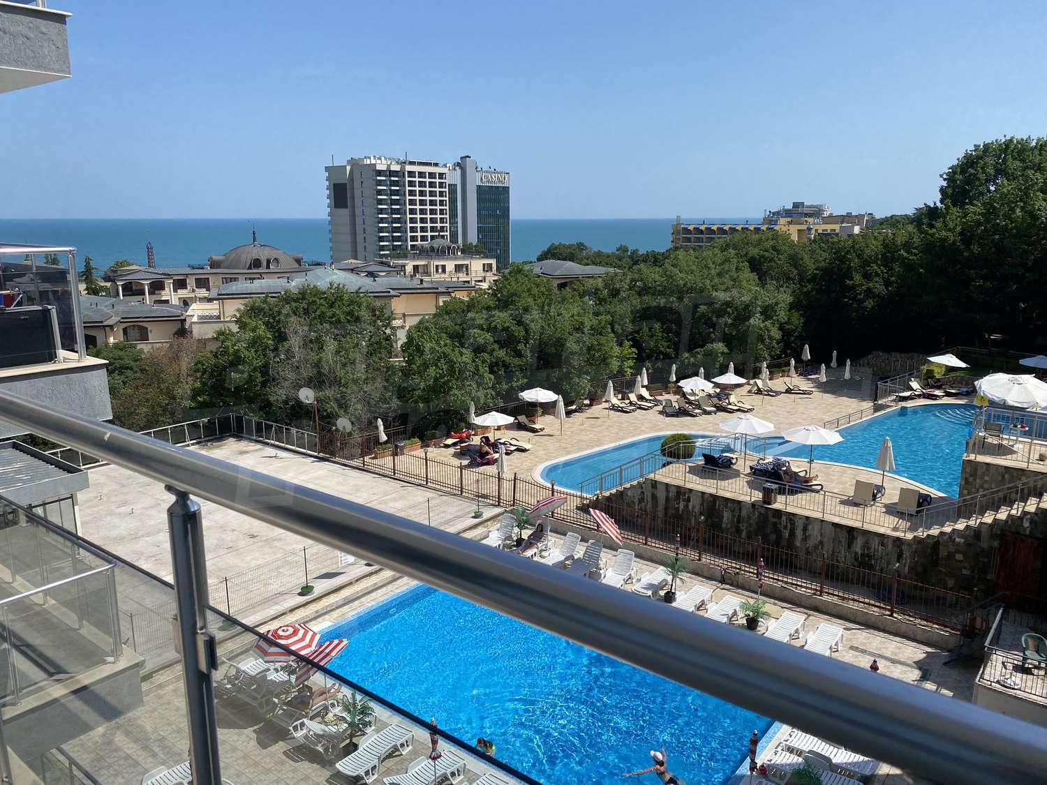 We offer to your attention two-bedroom apartment with sea view in complex Yalta in Golden Sands. Excellent property in complex with facilities and pool located in the central part of the resort. Holiday home 200 m from the beach and the sea. Excellent apartment in a well-maintained building with a great location.