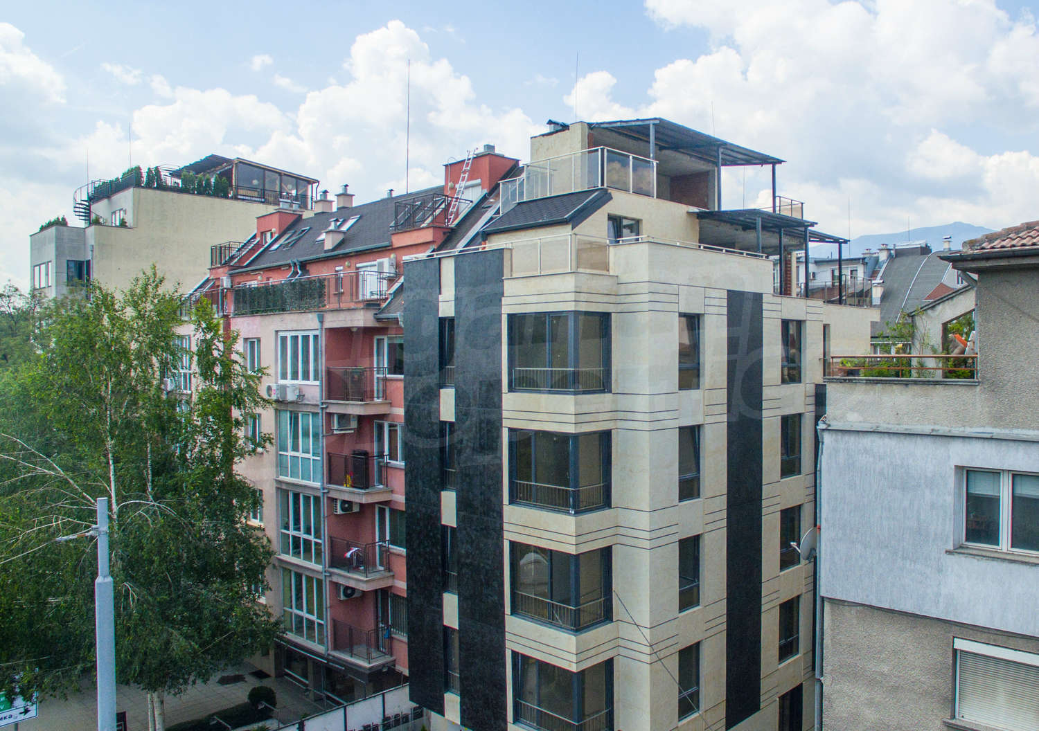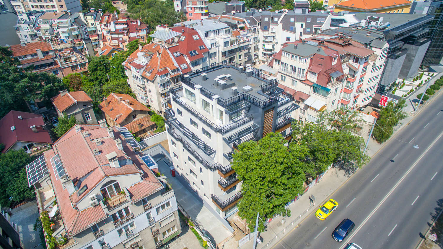 Modern, luxury building located in the prestigious Lozenets district, an excellent choice for a family home. Unique architectural vision, suspended facade, structural plaster, balconies and windows, parapets of architectural detail. It has 7 floors and has a total built-up area of 2 582 sq. M., One an underground floor with garages and basements, a ground floor with shops and another six floors with apartments. By choosing a property in the building you choose spacious and bright rooms, quality construction and prestigious location.