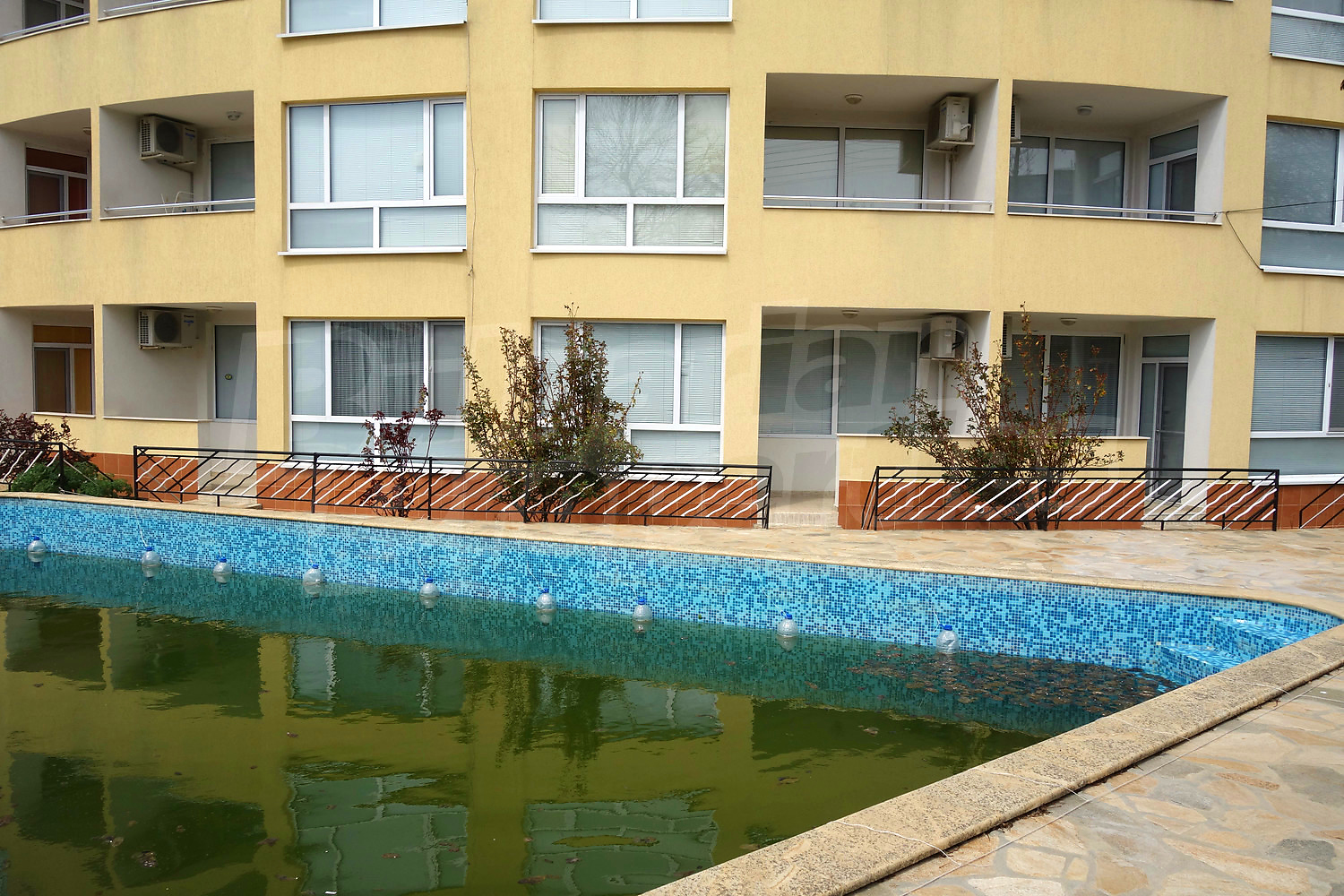 The apartment is fully furnished with everything needed, ready for use. The complex has an outdoor swimmign pool, barbecue, landscaped green area, free parking spaces. The annual maintenance fee is 6 euro / m2.