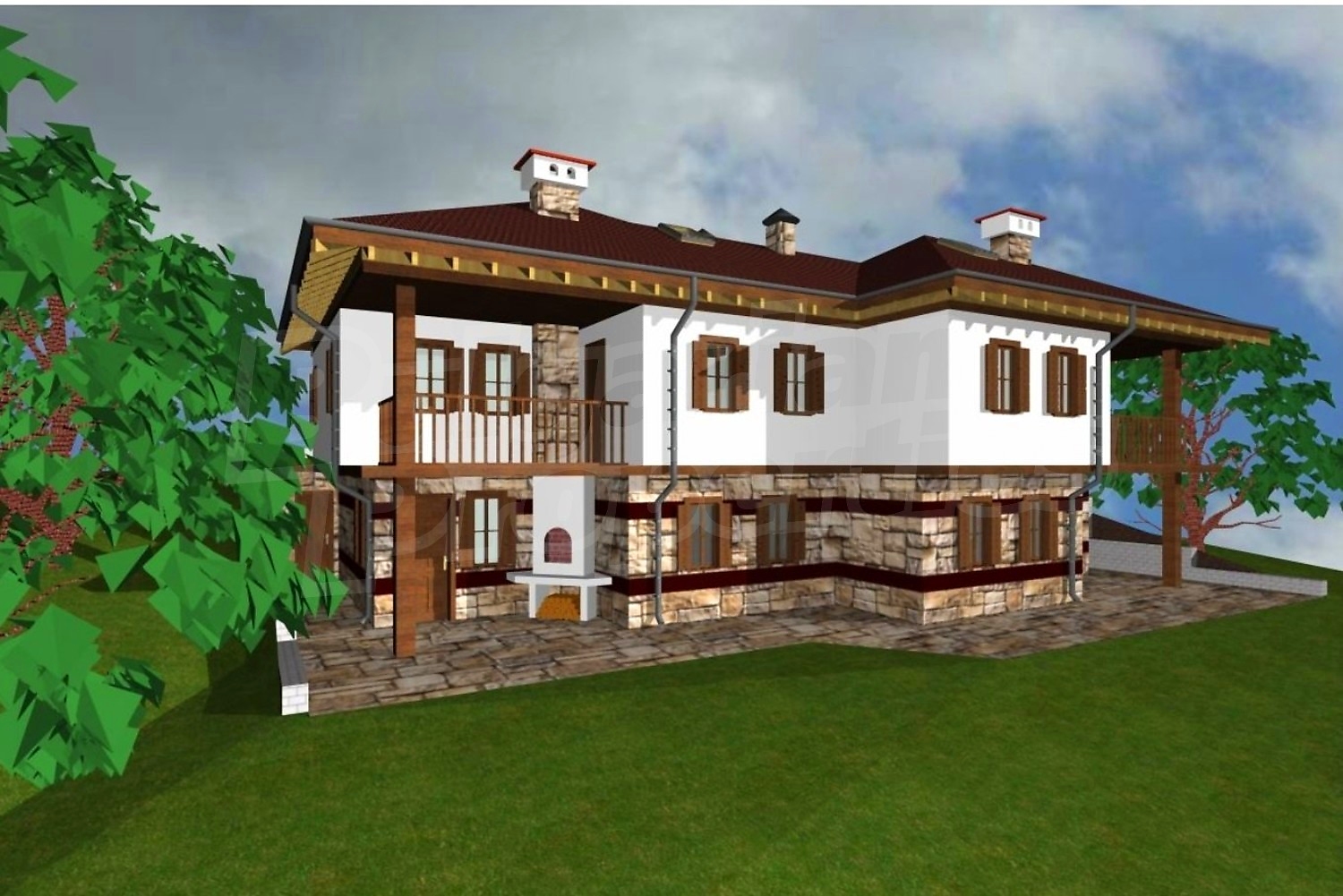 The plot is southern with an area of 2391 m2 and displacement of 17 meters, so from the verandahs there is an unusual panoramic view of the village of Polkovnik Serafimovo.
