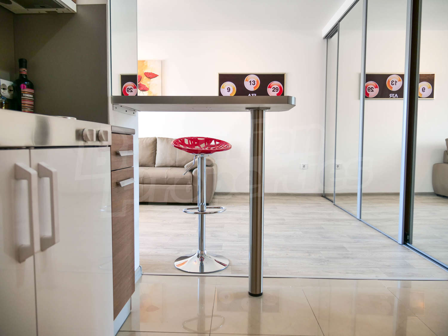 The apartment is furnished with quality furniture and electric appliances.