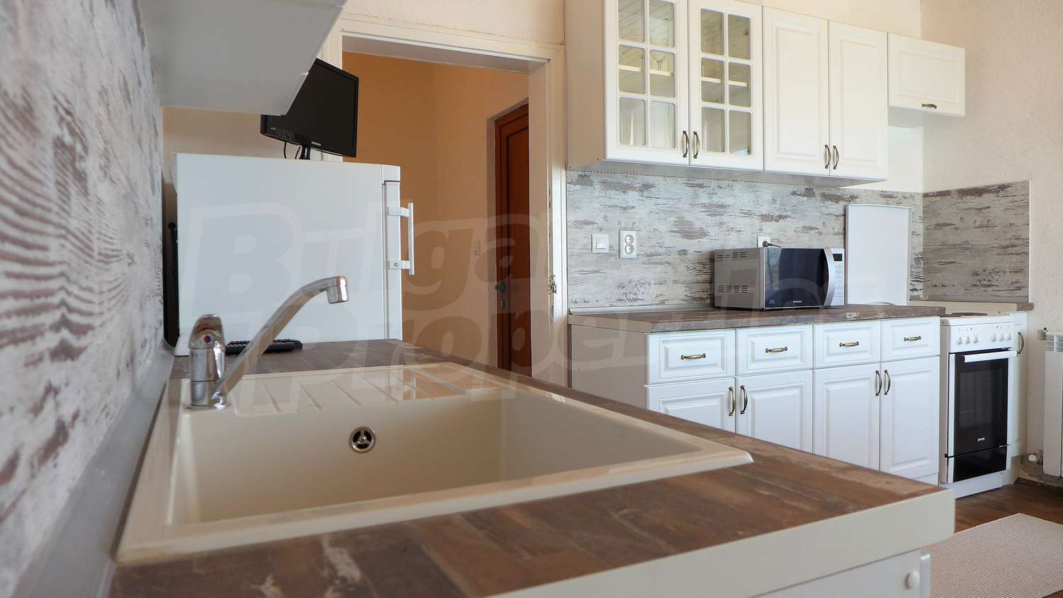 The small house has built up area 45,57 sq. m and all built up area 90,57 sq. m. It includes two floors. On the ground floor you will find a bedroom and a WC/bathroom, and on the first floor – a big bedroom and a terrace.