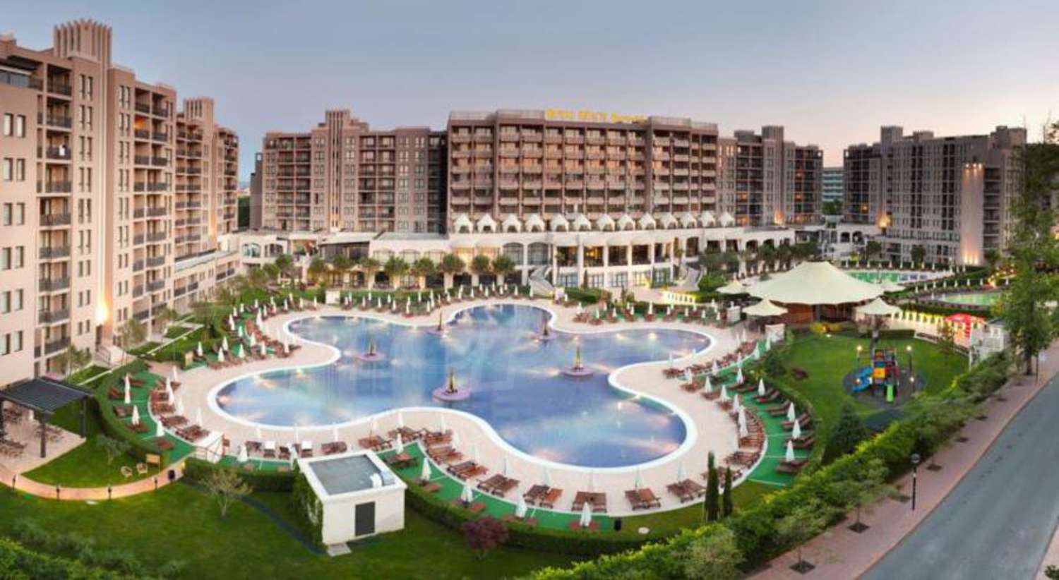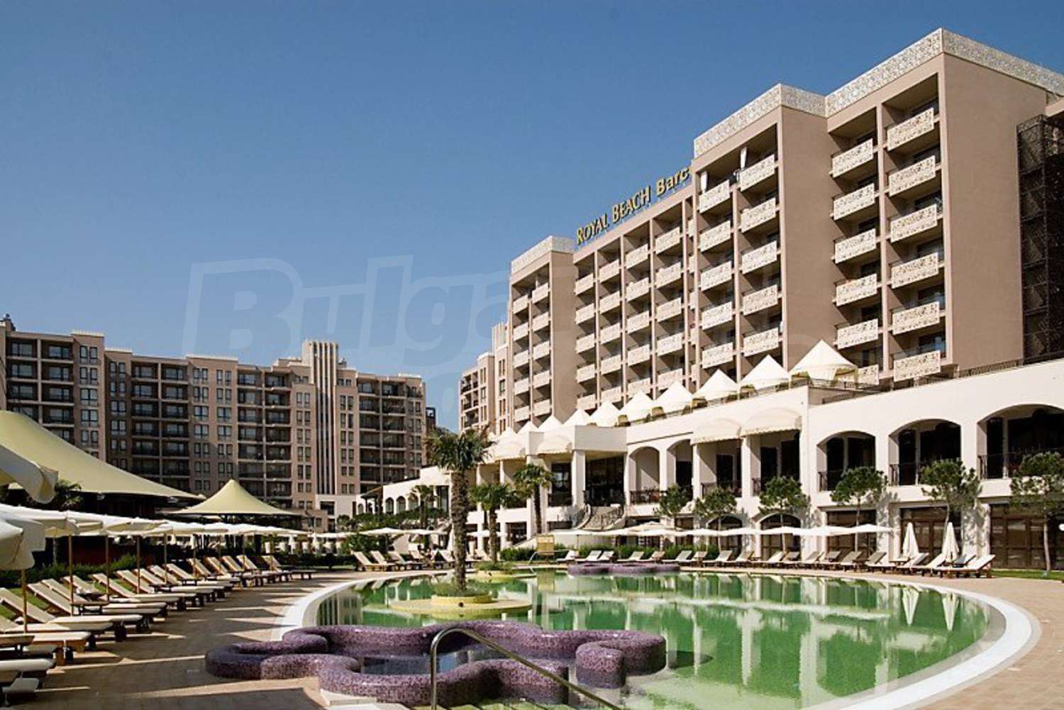 Apart-Hotel Royal Beach Barcelo is built to the modern construction designs, of high quality materials, occupying a large space - gardens of 9000 sq.m. and swimming pools (1700 sq.m.), which provide pleasant feeling of space, freedom and bring enjoyment. Here you will find the most modern services and amenities: Internet cafe, Wi-Fi, stores, POS terminal, ATM, money exchange, car rental, garages, beauty salon, doctor, room service, laundry, ironing, dry cleaning, two saunas, tennis court, 3 jacuzzi, 2 solarium, Turkish bath, massage.