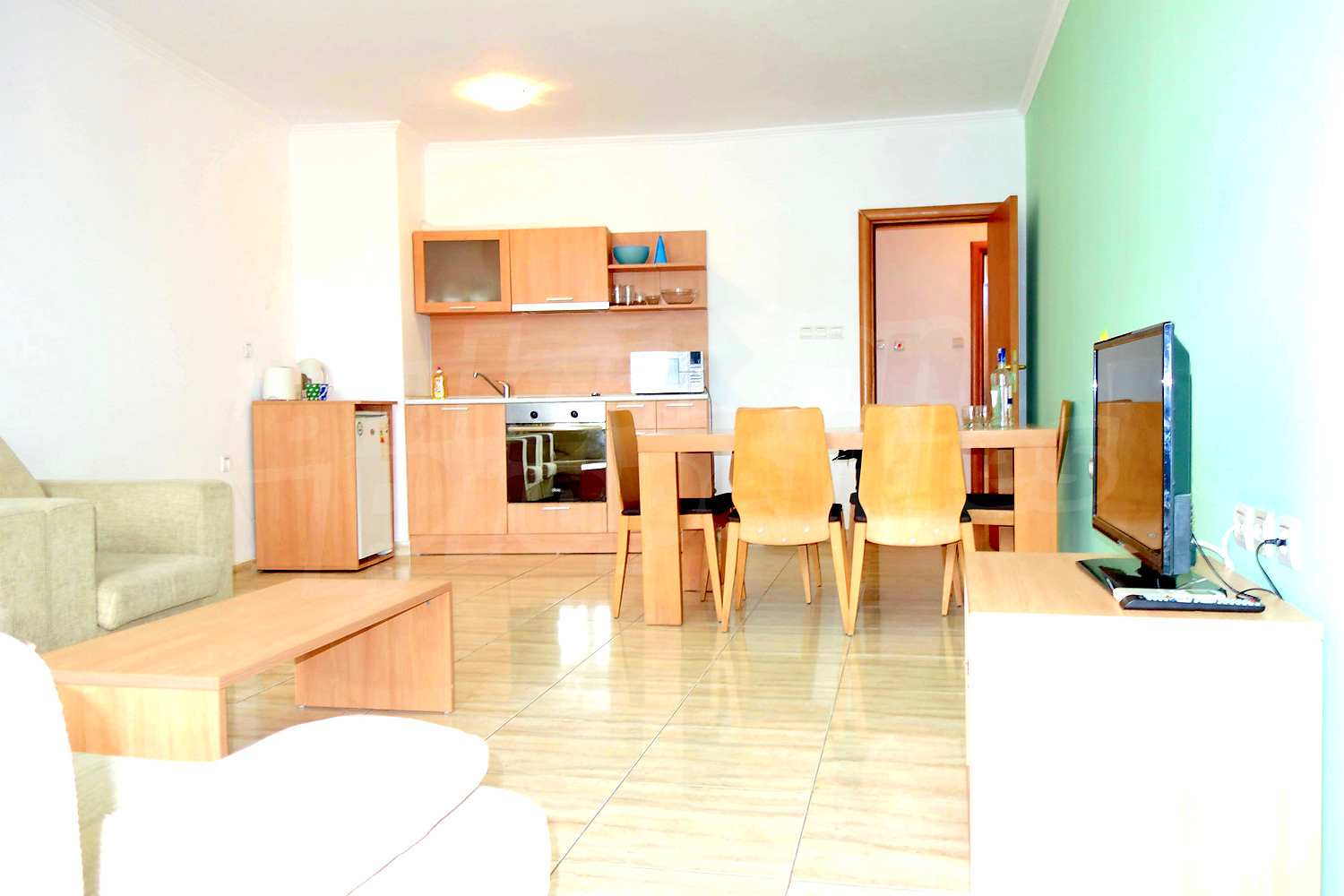 The apartment is fully furnished and ready for use. It can be rented during the summer season with good incomes. The annual maintenance fee is 500 Euros.