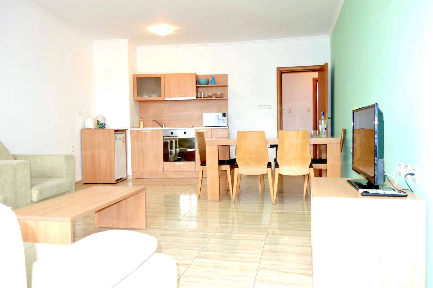 The apartment is fully furnished and ready for use. It can be rented during the summer season with good incomes. The annual maintenance fee is 500 Euros.