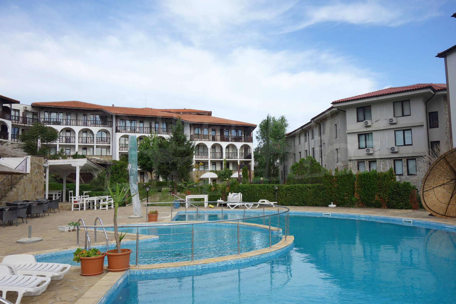 In the center of the complex there is an operating water mill. The complex offers outdoor pool, tennis court, garden, restaurant, bar, children's pool and playground, parking, water sports, gym.