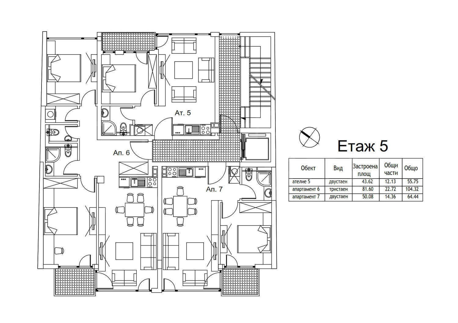 The construction is a monolithic skeleton-beamless structure made up of slabs and carrier reinforced concrete washers and columns, which provides customers with maximum opportunities for the individual distribution of the premises in the apartments. The apartments are offered for sale completed with putty and plaster, according to the Bulgarian State Standard, with wiring for internet and TV, as well as for electricity and water supply.
