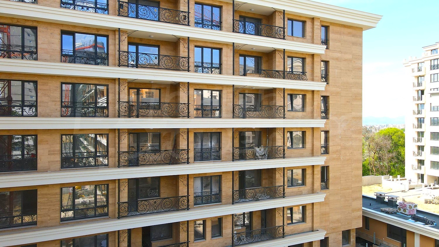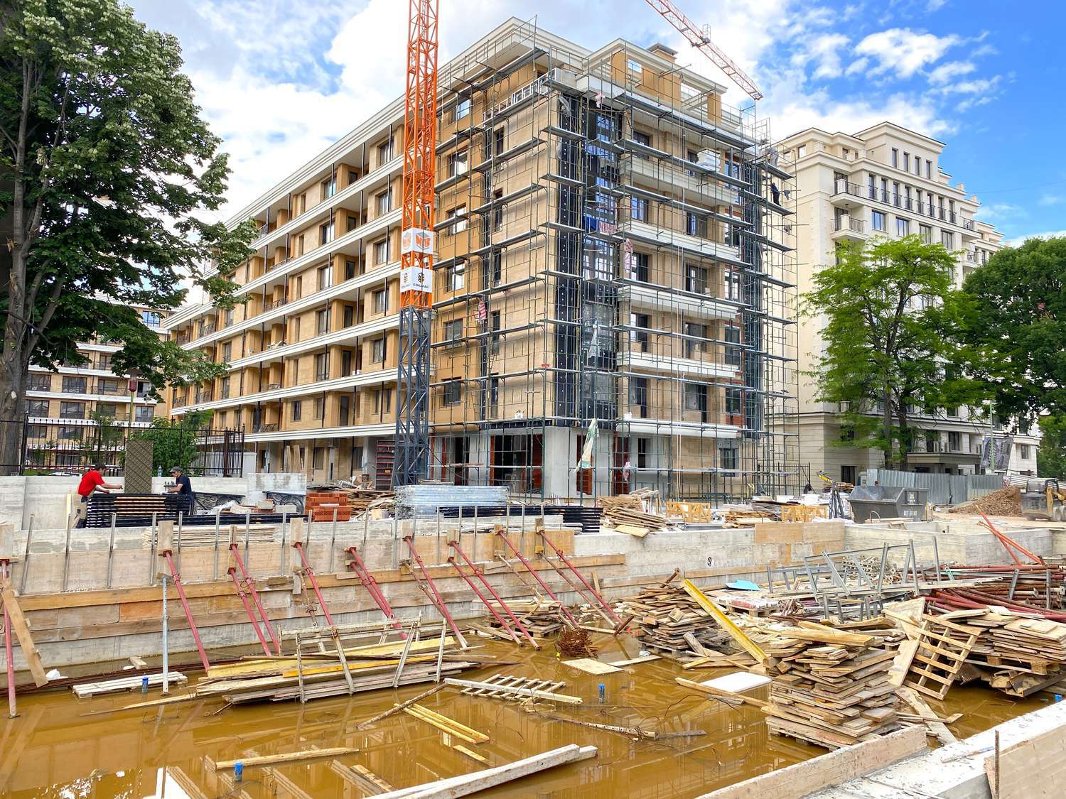 The complex is located in an independent property with an area of 7040 sq.m. and consists of 142 apartments, 5 ateliers, 7 studios. The total number of garage places in the underground garage in the property is 161. In the south-eastern part there is a swimming pool for adults and children.