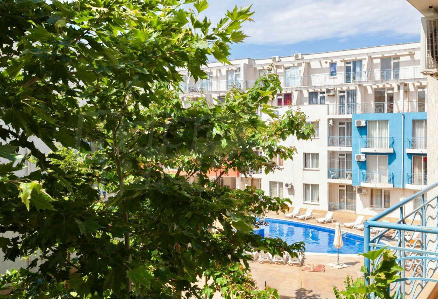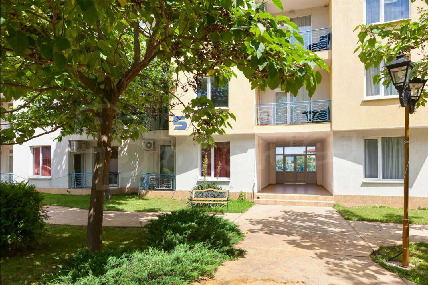 The newly-built complex consists of six blocks with four floors. It has nice green areas, children's playground, outdoor swimming pool, reception, restaurant, shops, parking lot, bar, year-round security, regular transport between all apart-hotels in Sunny Day Complex and the center of Sunny Beach with amenities and places for entertainment.