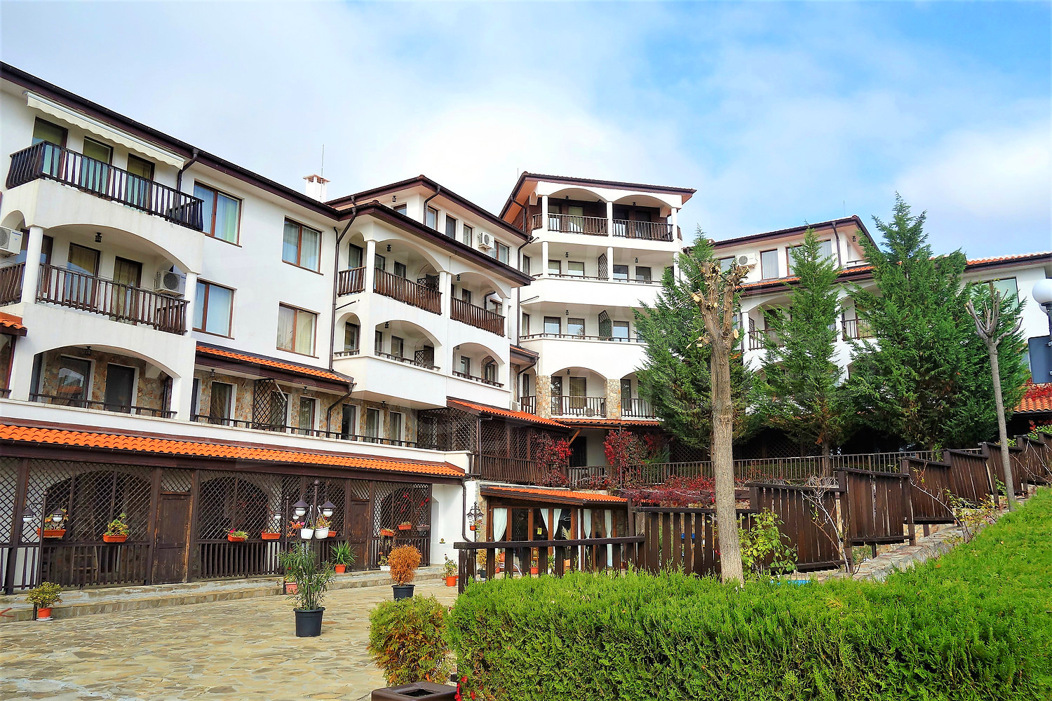 The complex is located 300 meters from the sea shore and marina Dinevi marina. "Kambani 2" consists of 48 apartments, set in stylish buildings. The architecture of the village is in old Renaissance style.