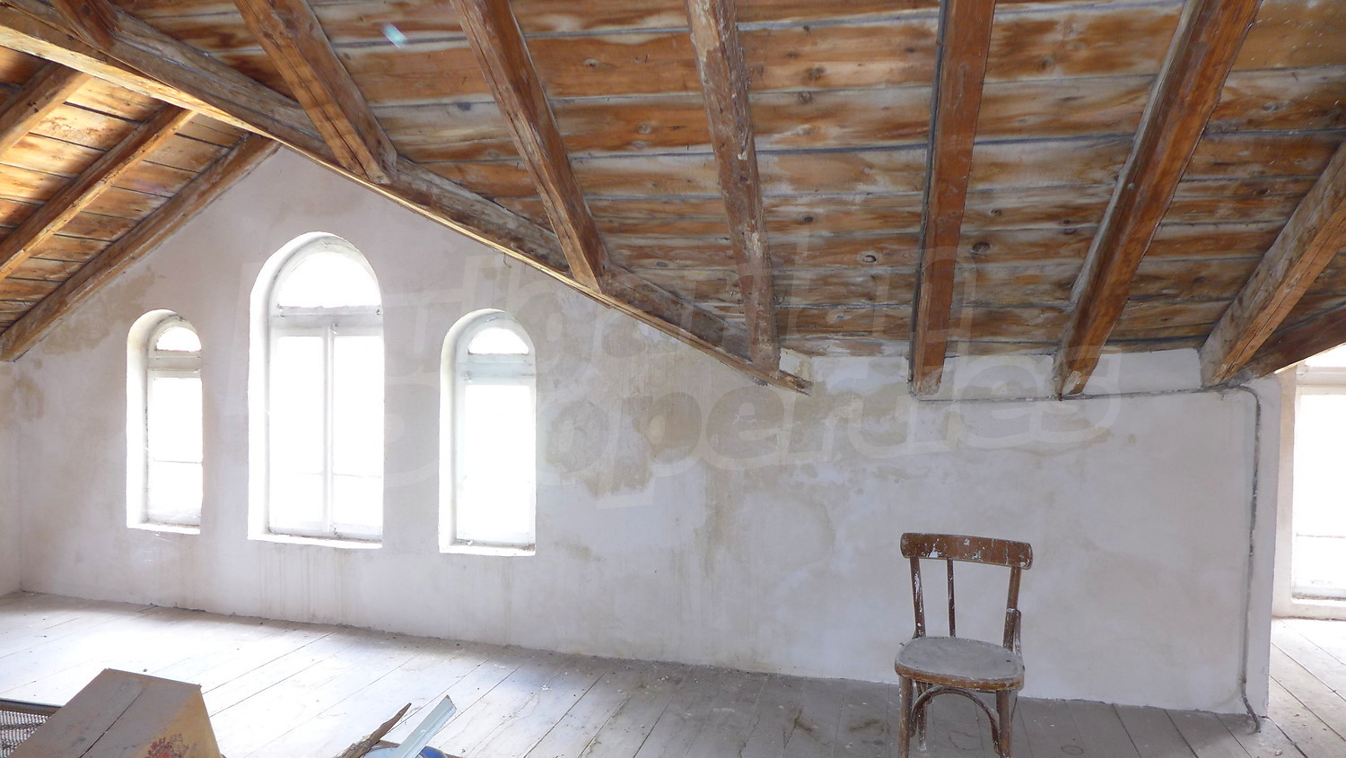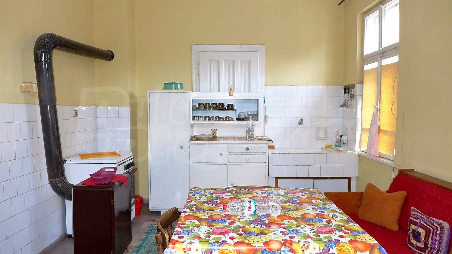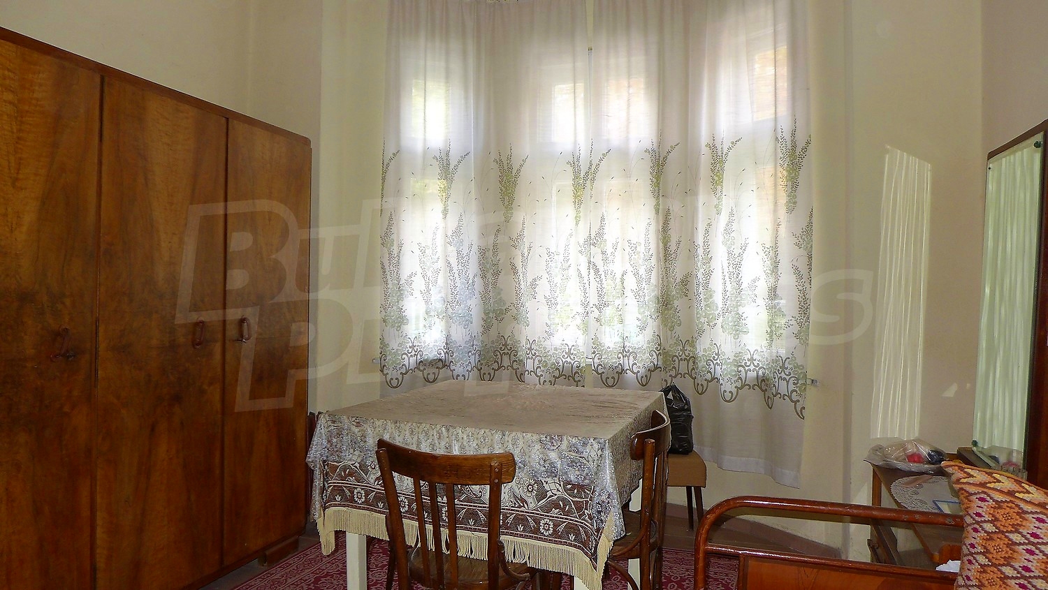 We offer you this house with a total area of 200 sq. m and a garden 457 sq. m. The living area is distributed between a basement, which includes some premises for stores, a living floor - 2 entrances, a corridor, a living room, a kitchen with a dining room, 2 bedrooms, a WC/bathroom and one more floor, which presents an attic premise. The walls of the house are massive, the floorings are wooden and the windows have wooden frames.