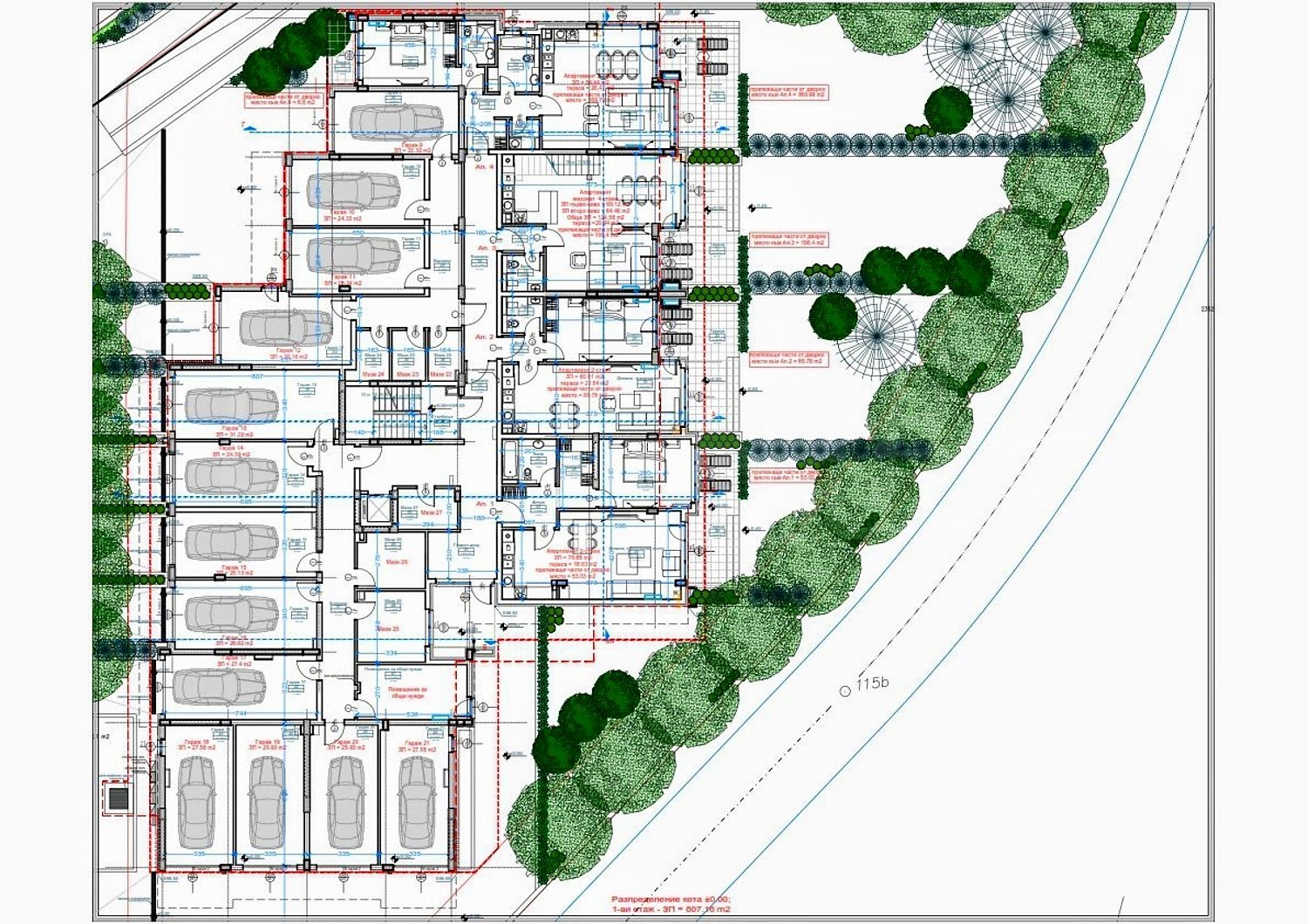 Apartments (various types), 2-bedroom apartments, Garages