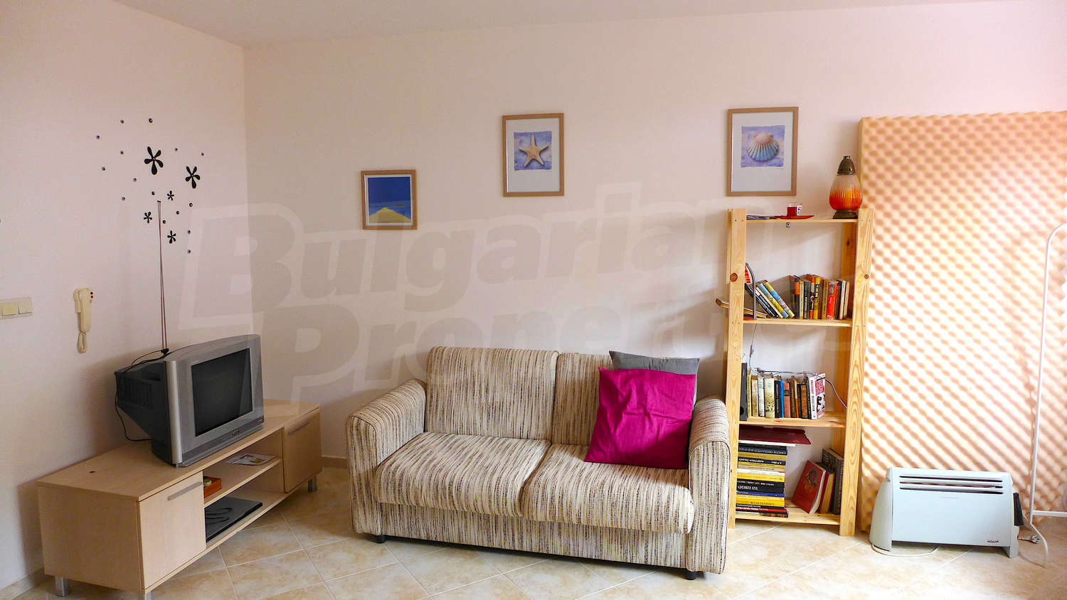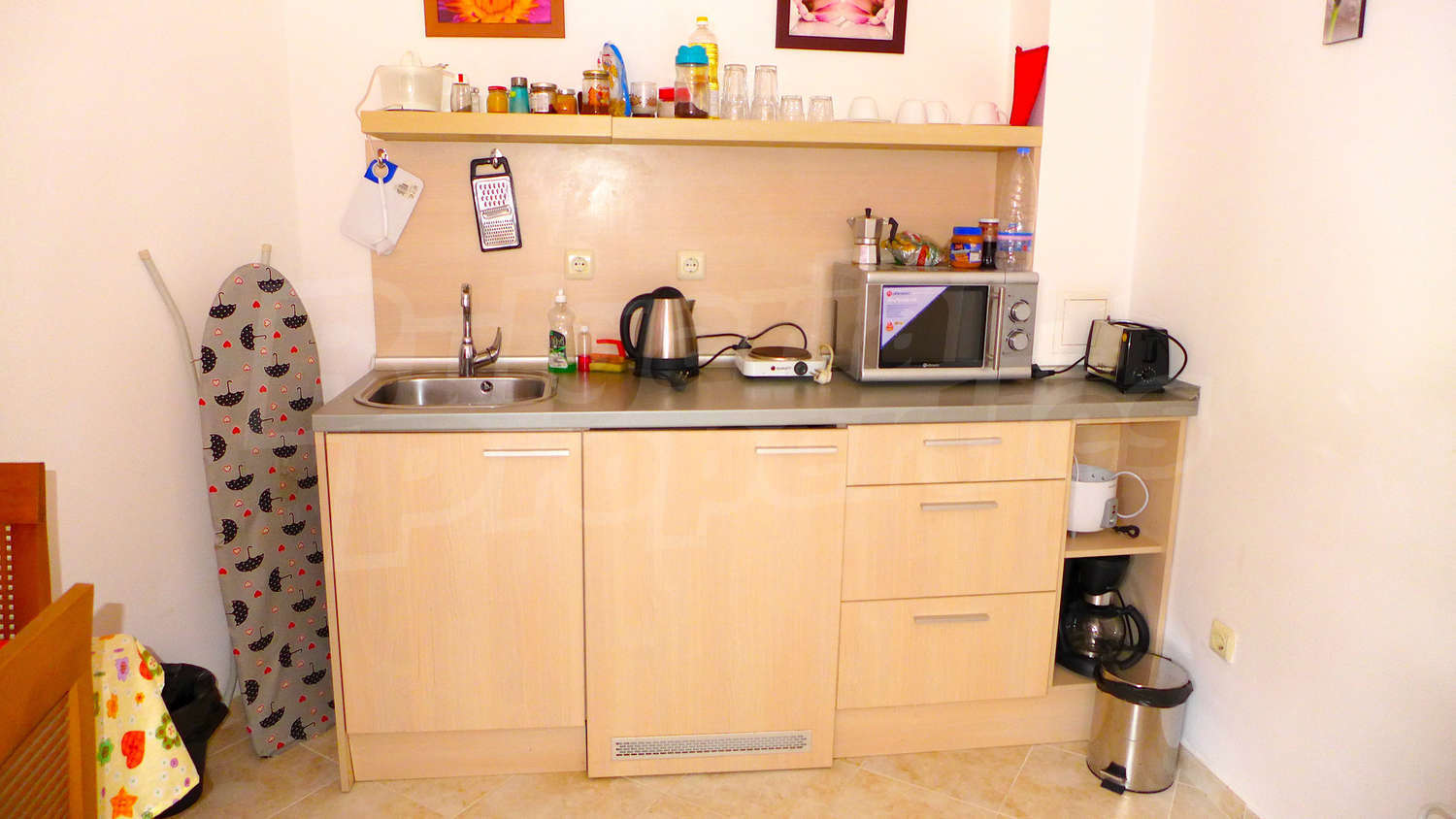 We offer for sale cozy spacious studio located on the ground floor in Sunset Kosharitsa complex. Convenient location 6 km to the beach and 300 m to the bus stop. The complex has a guarded area with 6 swimming pools, a fitness and spa center, free parking, a tennis court and a restaurant.