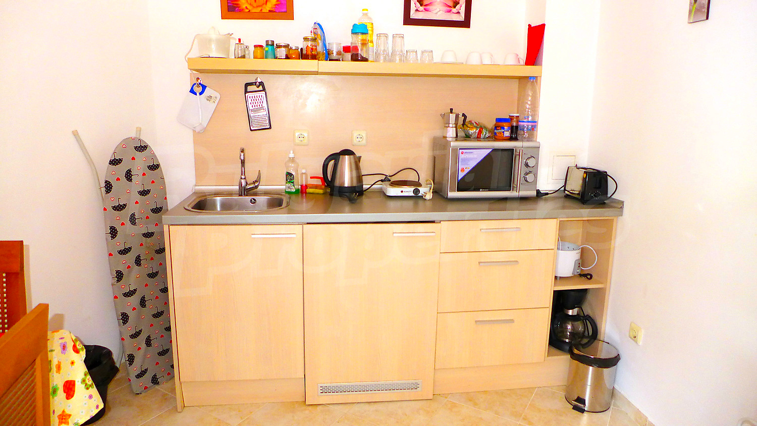 The studio is furnished and has everything needed for living. It is located on the ground floor and has no balcony.