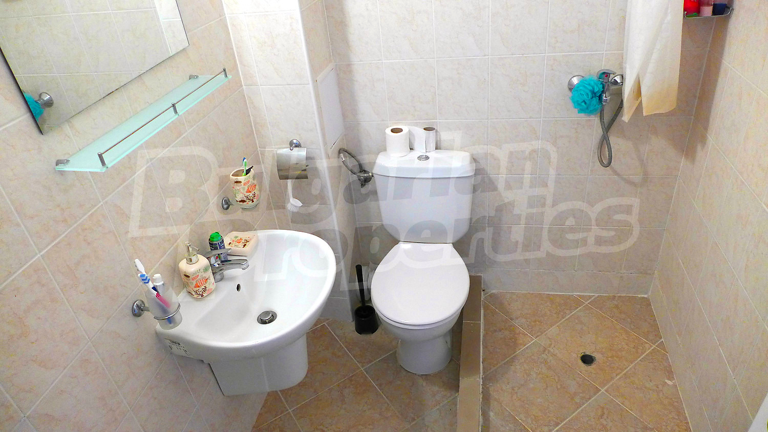 • Bathroom with toilet - with shower cabin, sink with mirror