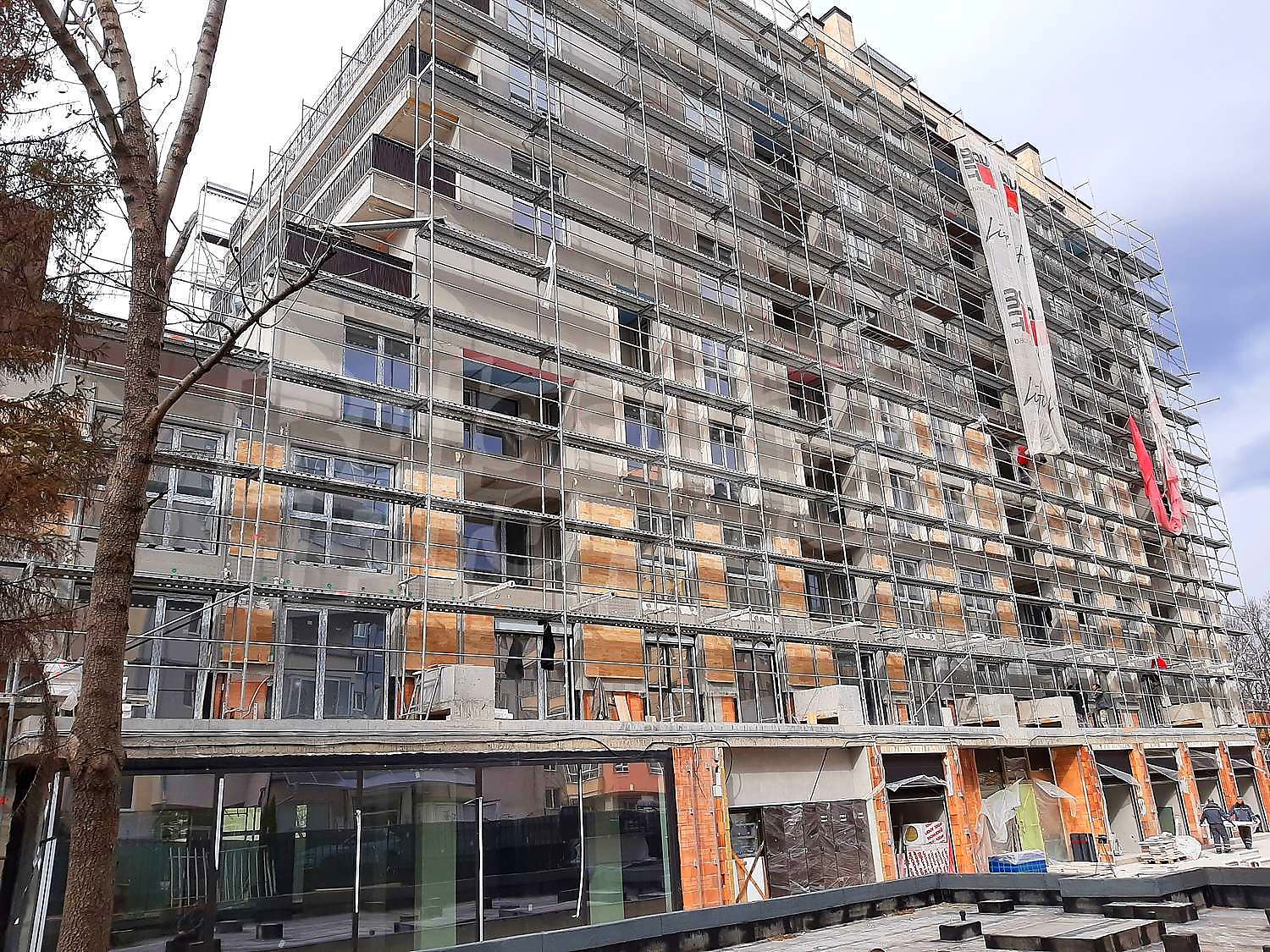 • From 2nd to 9th floor: six-chamber PVC windows "KOEMERLING" and triple low-emission glass package; 1st and 10th floors: Aluminum joinery