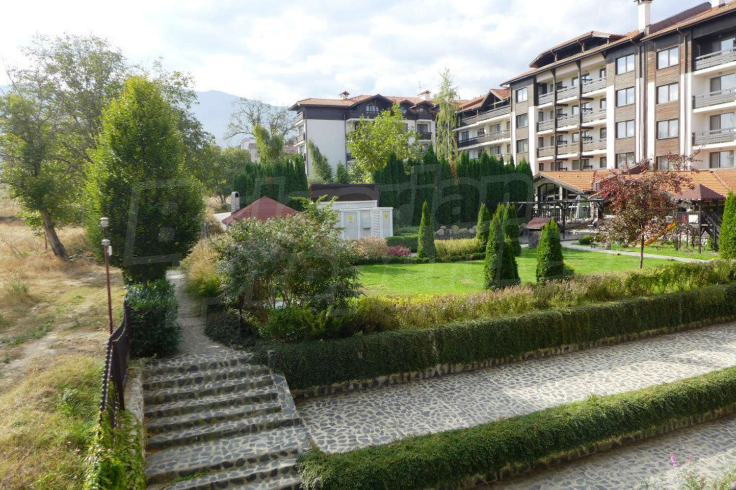 Furnished holiday studio with beautiful views of the mountain and the inner yard of the wonderful gated complex Mountain Paradise by the Walnut Trees, 200 m from the Gondola lift. The annual maintenance fee is 12 euro per sq m. Bansko is one of Europe's fastest growing ski destinations, declared the best ski resort in Eastern Europe. The slopes offer runs and tracks for all types of skiers and will suit both beginners and experts. The Pirin Mountain is predominantly alpine in character with two peaks towering above 2900 metres.
