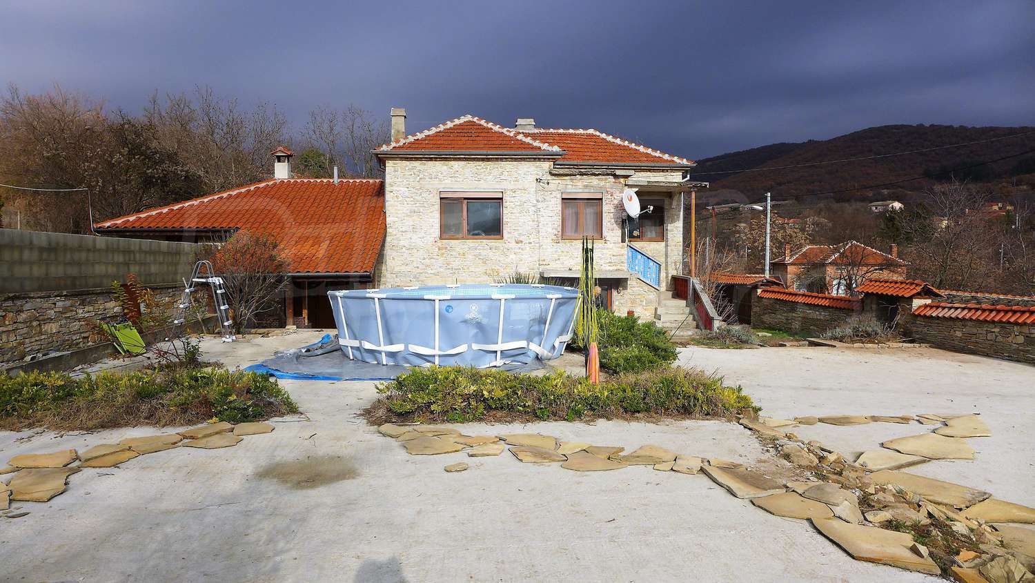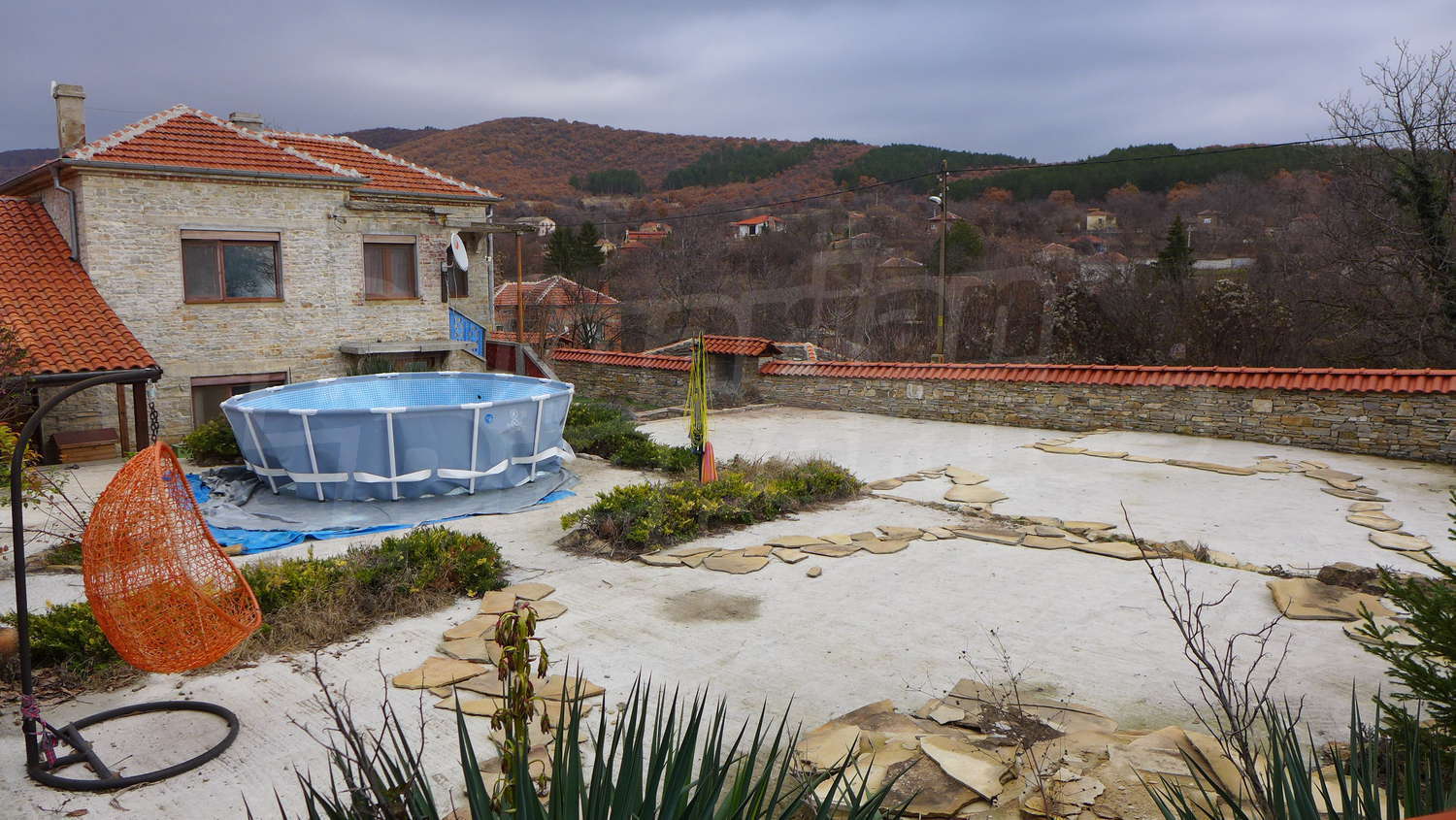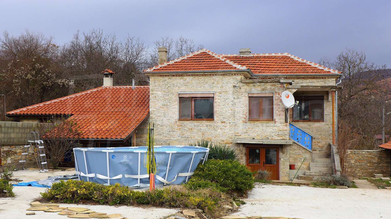 The house is in avarage condition. There is electricity and water /inside/ and the property is connected to a septic tank. The road to the property is an asphalt one and easy accessible in the winter.