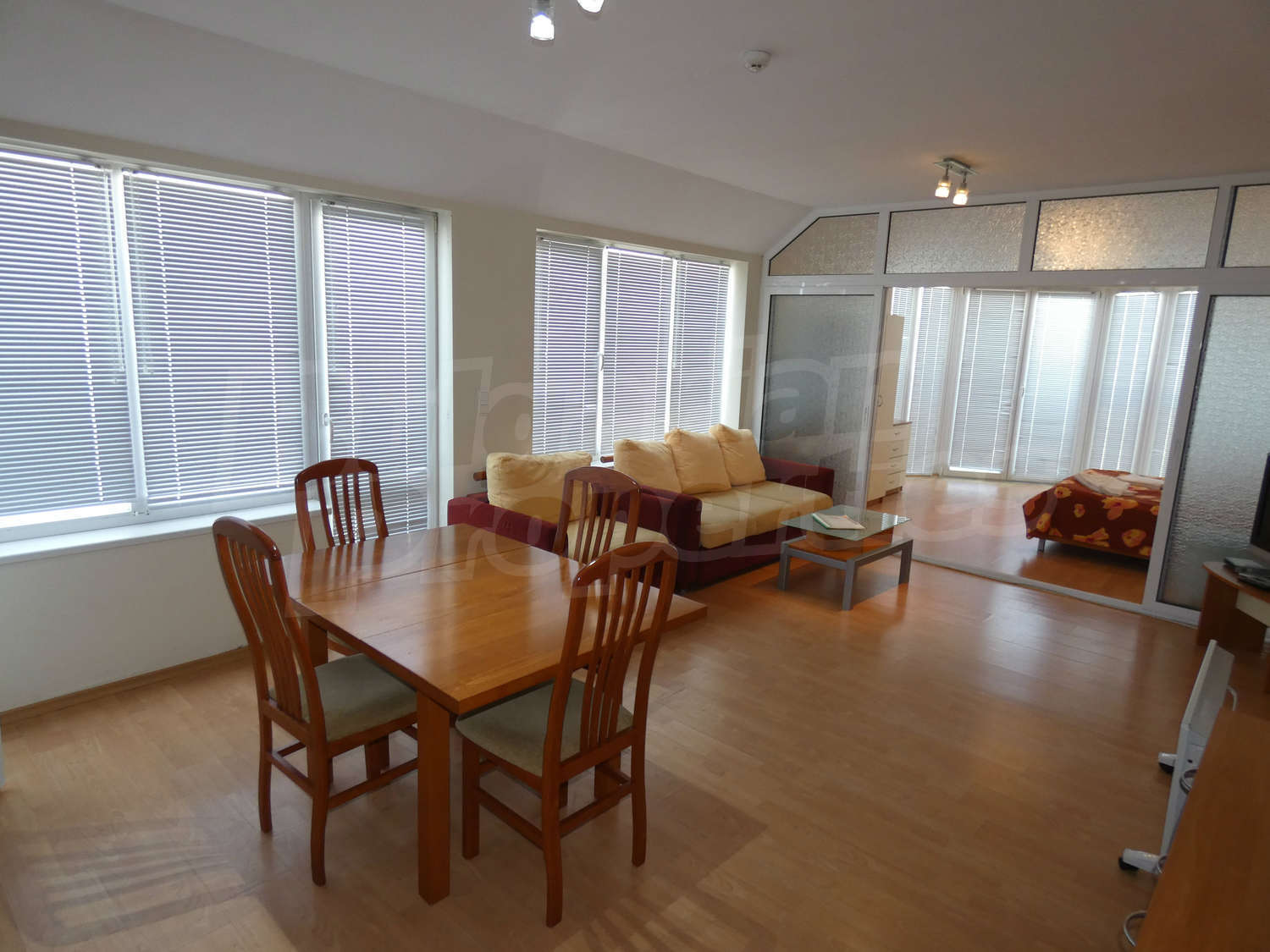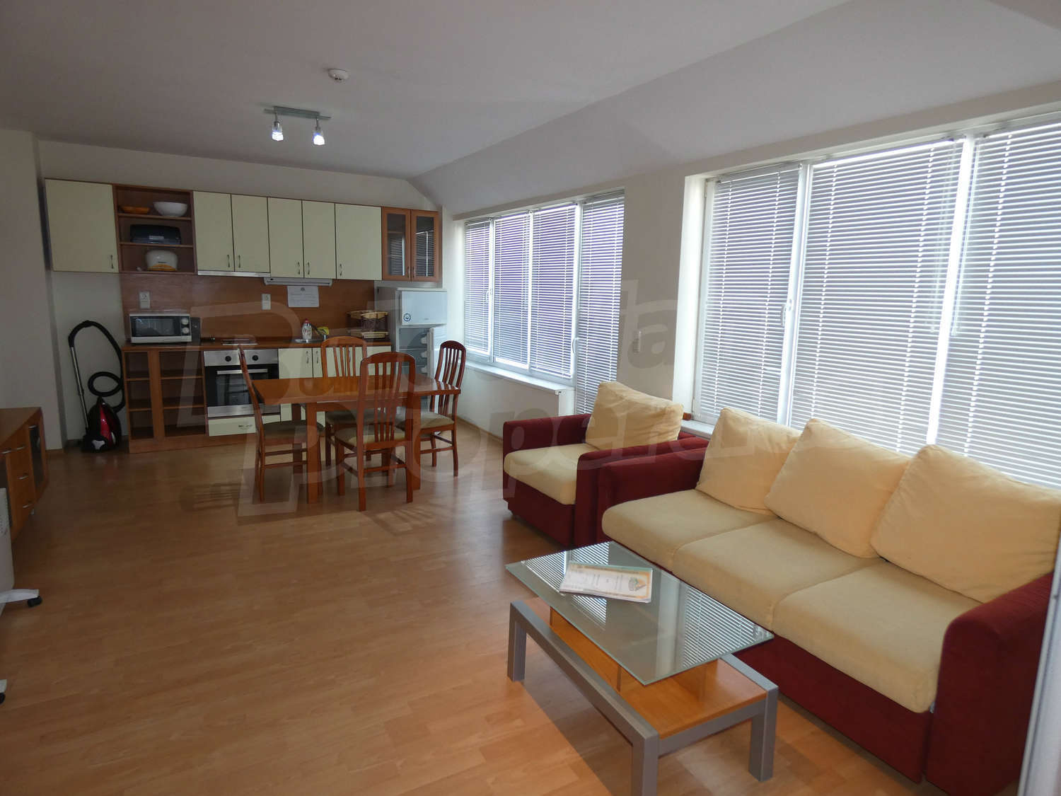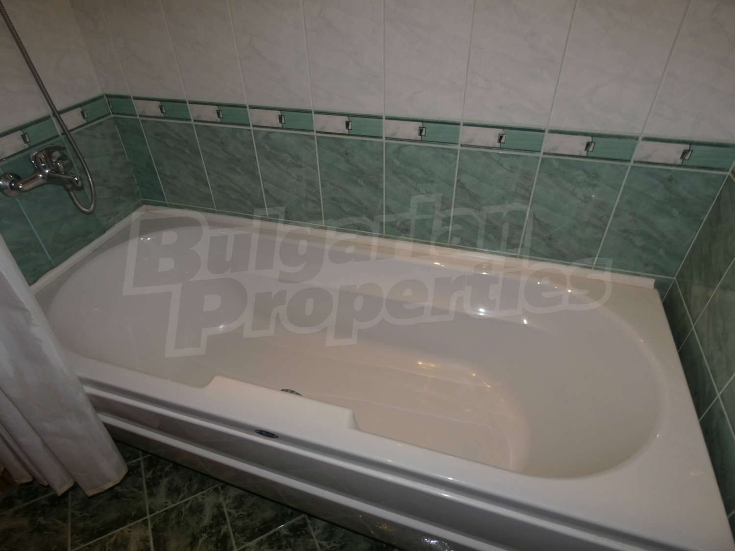 The apartment is set on the third floor in a building with a lift, with a total area of 100.89 sq.m., net area - 91.72 sq.m. It is heated by electrical convectors. The floorings are with laminate and the windows are PVC. The apartment is facing west / north and reveals picturesque views of Rila Mountain, forests and the village. The flat accommodates comfotably up to 6 adults or family with children. There are 2 bathrooms - one with a bathtub, the other with a shower. The living room is furnished with a sofa bed, dinning-table and fully equipped kitchenette (oven, electric hobs, microwave, fridge, toaster and kettle). Two separate bedrooms - one with a double bed and wardrobe, the other - with two single beds and wardrobe. This apartment is also equipped with a ski locker. The maintenance fee is 12 € per m2.
