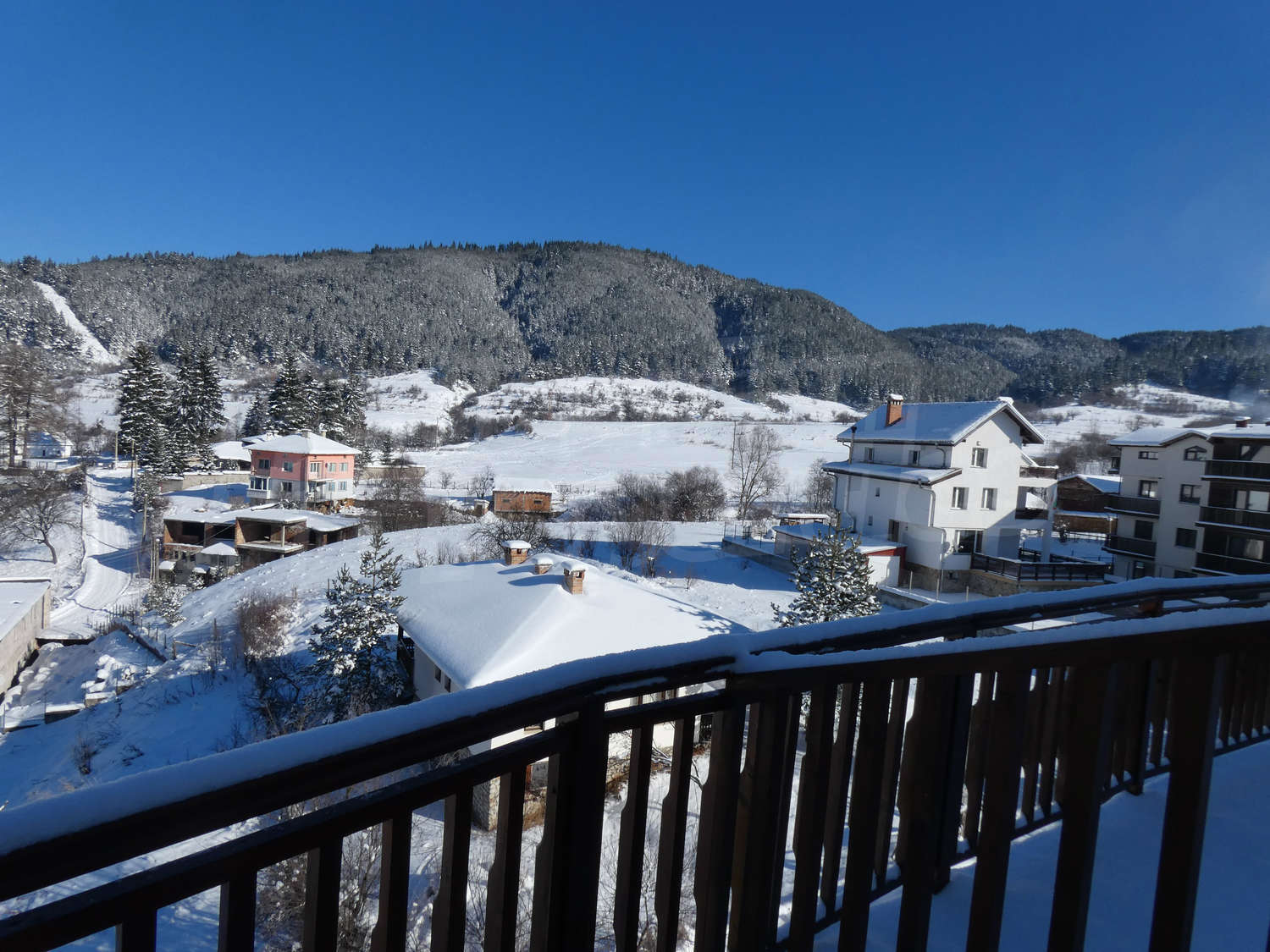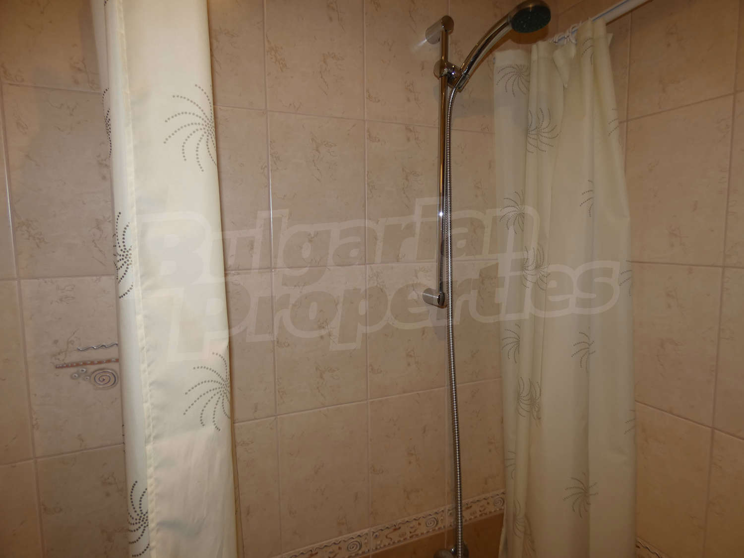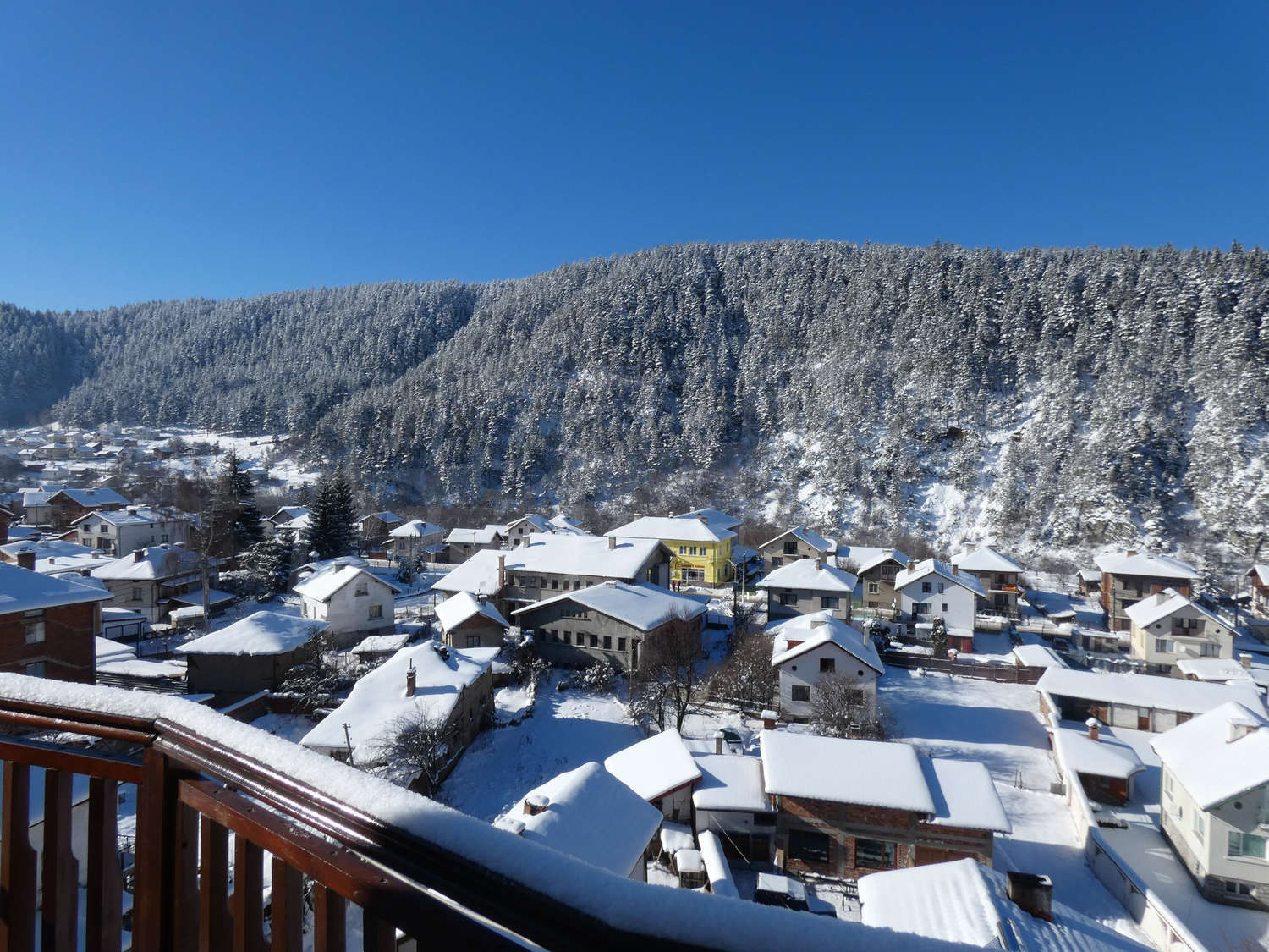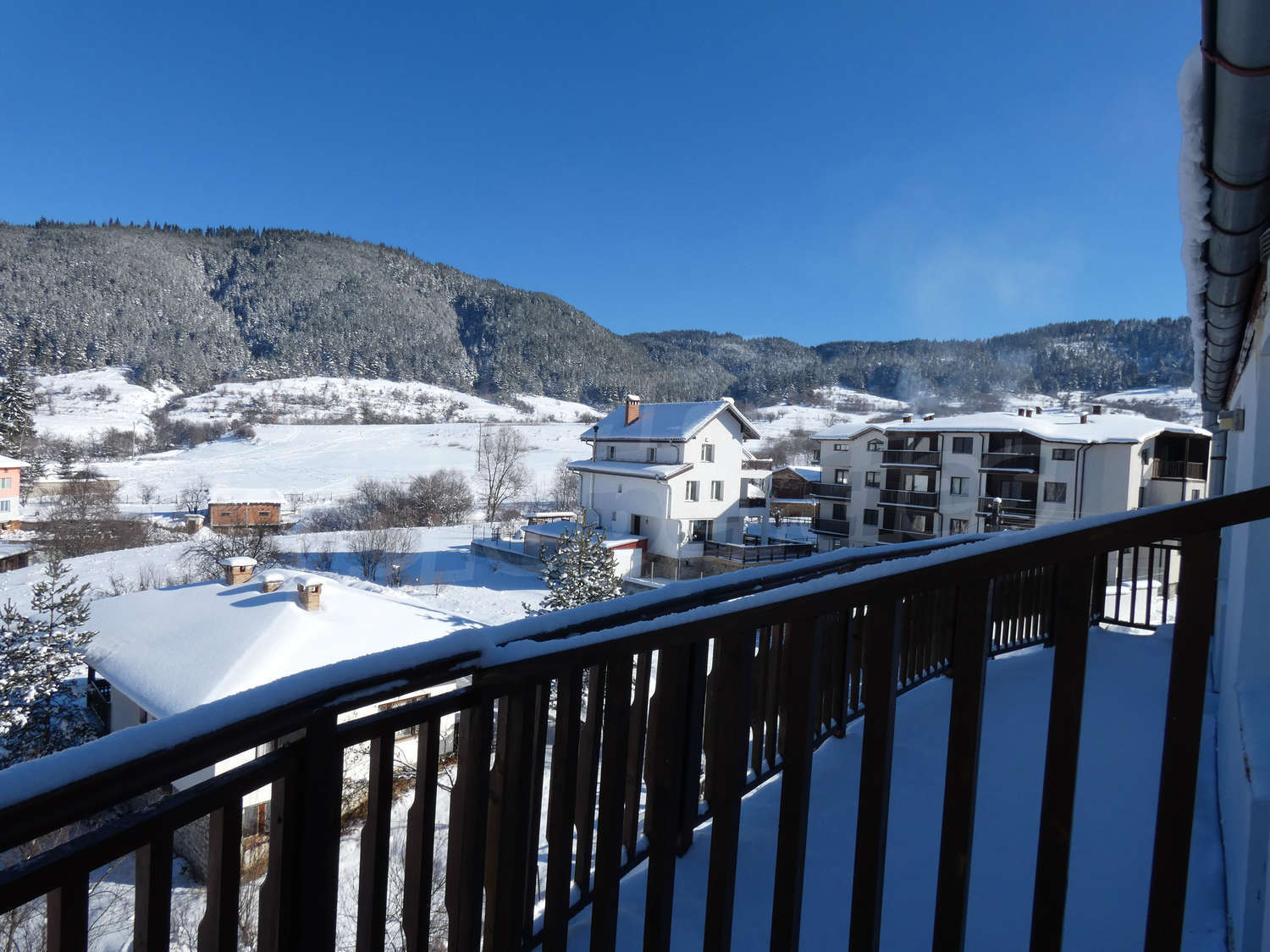 The apartment is set on the third floor in a building with a lift, with a total area of 100.89 sq.m., net area - 91.72 sq.m. It is heated by electrical convectors. The floorings are with laminate and the windows are PVC. The apartment is facing west / north and reveals picturesque views of Rila Mountain, forests and the village. The flat accommodates comfotably up to 6 adults or family with children. There are 2 bathrooms - one with a bathtub, the other with a shower. The living room is furnished with a sofa bed, dinning-table and fully equipped kitchenette (oven, electric hobs, microwave, fridge, toaster and kettle). Two separate bedrooms - one with a double bed and wardrobe, the other - with two single beds and wardrobe. This apartment is also equipped with a ski locker. The maintenance fee is 12 € per m2.
