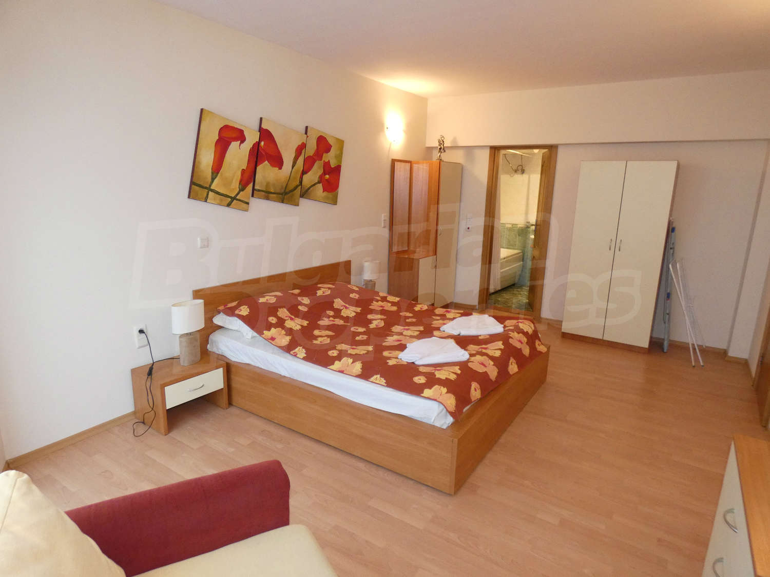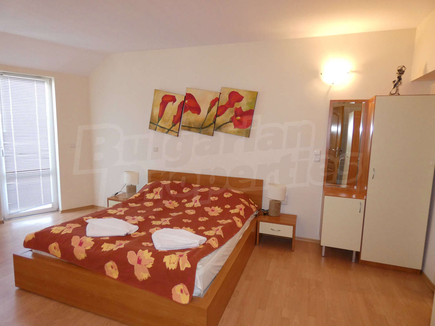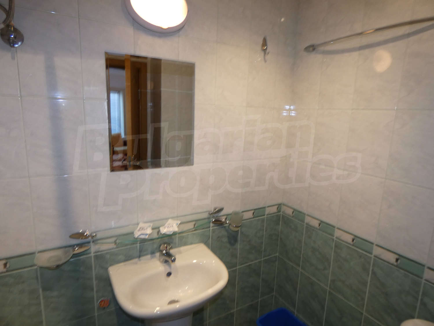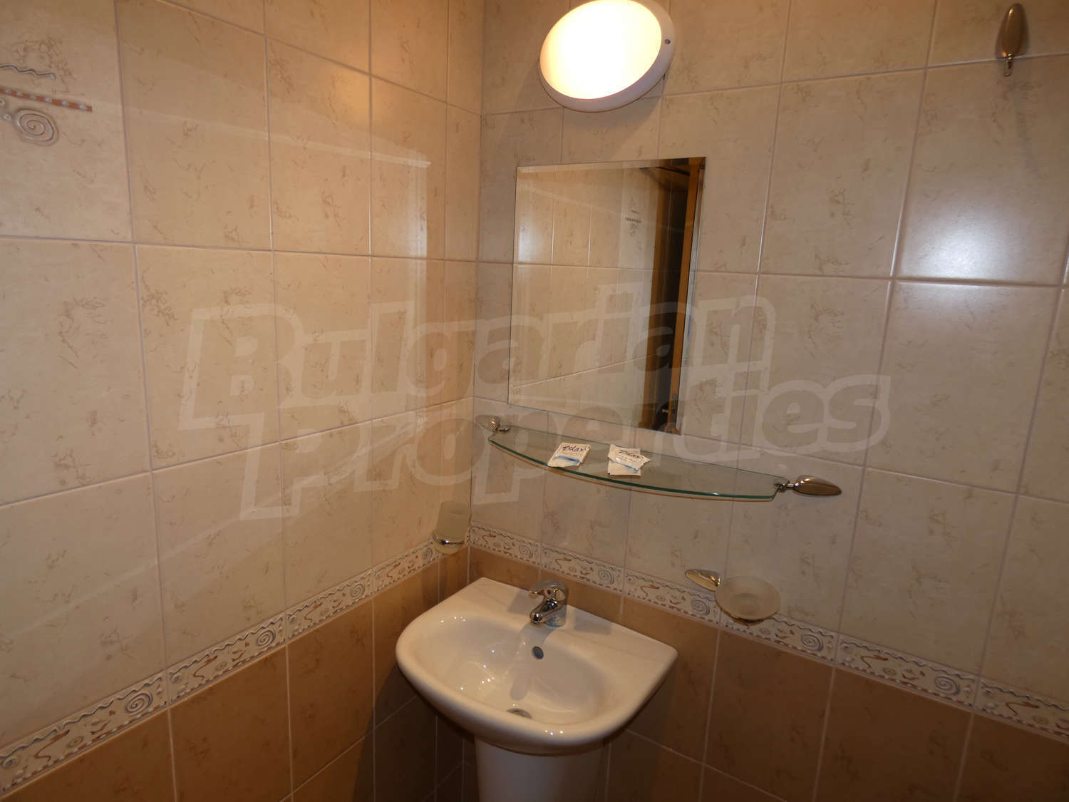 The apartment is set on the third floor in a building with a lift, with a total area of 100.89 sq.m., net area - 91.72 sq.m. It is heated by electrical convectors. The floorings are with laminate and the windows are PVC. The apartment is facing west / north and reveals picturesque views of Rila Mountain, forests and the village. The flat accommodates comfotably up to 6 adults or family with children. There are 2 bathrooms - one with a bathtub, the other with a shower. The living room is furnished with a sofa bed, dinning-table and fully equipped kitchenette (oven, electric hobs, microwave, fridge, toaster and kettle). Two separate bedrooms - one with a double bed and wardrobe, the other - with two single beds and wardrobe. This apartment is also equipped with a ski locker. The maintenance fee is 12 € per m2.