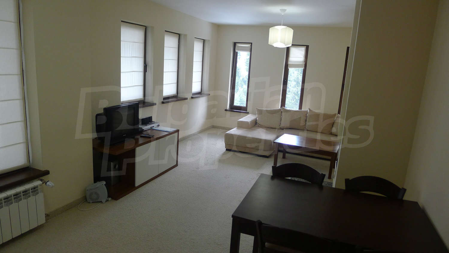 Cozy furnished one-bedroom apartment in a gated complex "Green Life" (Eurydice Hills) among the evergreen pine forests of the Rhodopes, in the southern part of Pamporovo, only meters away from the ski run with direct access to it. Green Life Apart Hotel (Evridika Hills) consists of two six-story buildings with 86 different type of apartments.