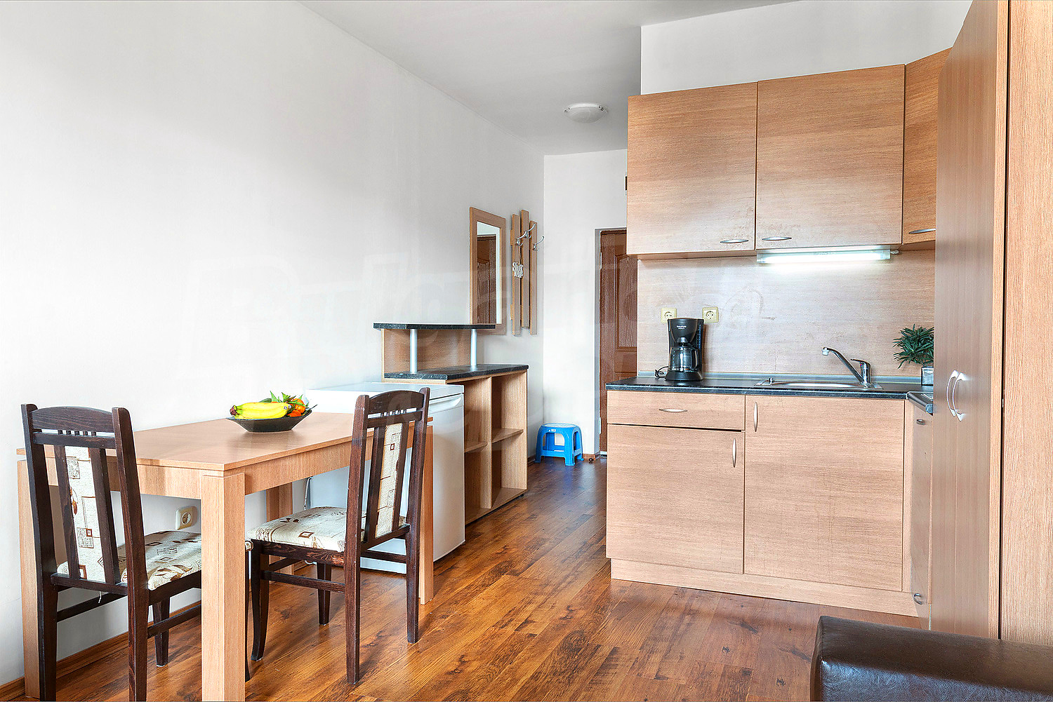 Our new attractive offer includes a ready to move in studio (40.67 sq.m.), tastefully furnished and equipped with everything needed for your comfortable vacations. The property is a part of the gated complex Panorama Bay 2 with convenient location only 200 m from the beach and 500 m from the center of Sveti Vlas near the popular sea resort Sunny Beach, known for its lively nightlife and numerous tourist attractions. The region combines sea and mountain air, lack of industrial enterprises, proximity to the beautiful town-museum Nessebar, excellent infrastructure and nice conditions for rural, hunting, fishing, wine, forest and cultural tourism. The annual maintenance fee is 8 Euro per sq.m.