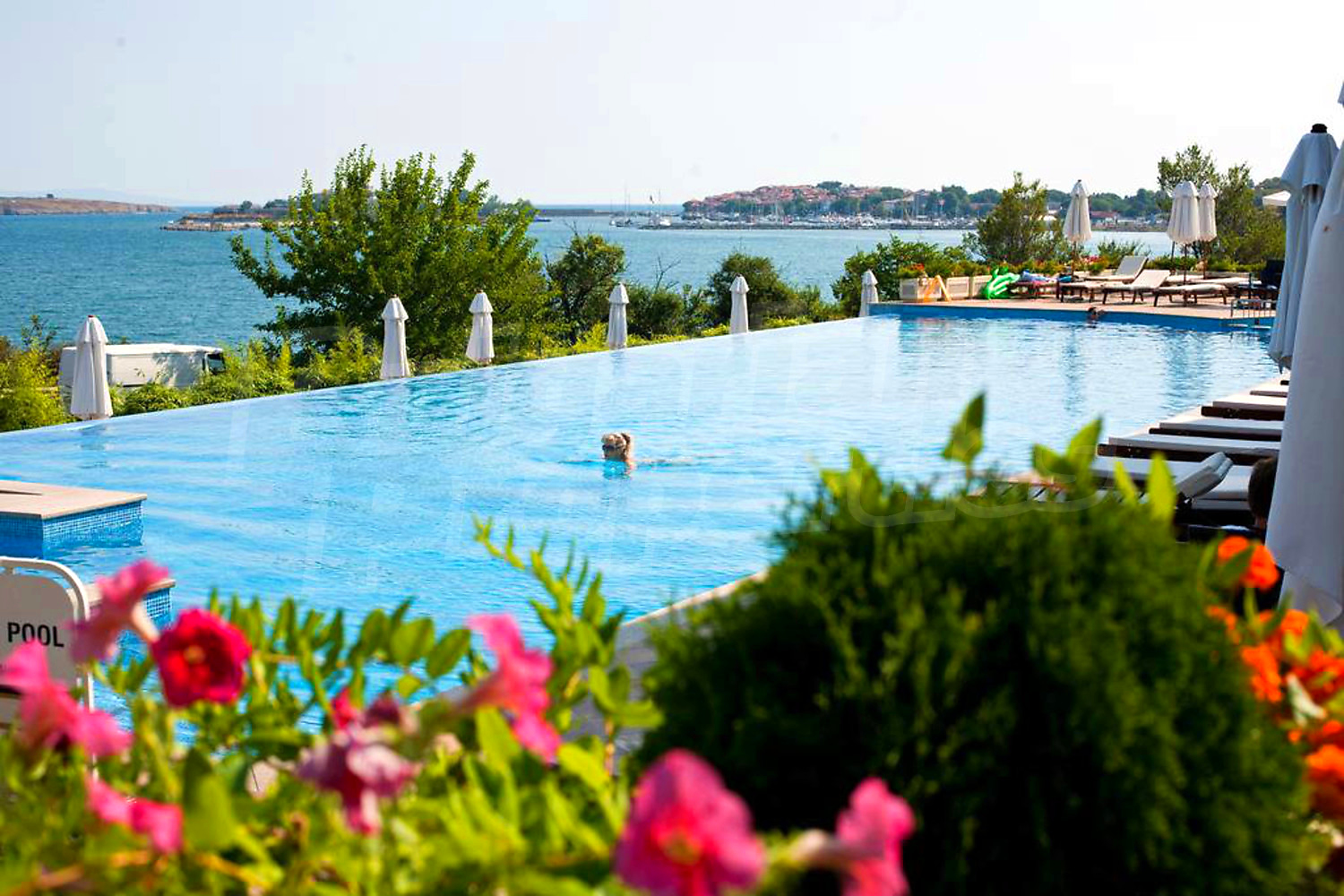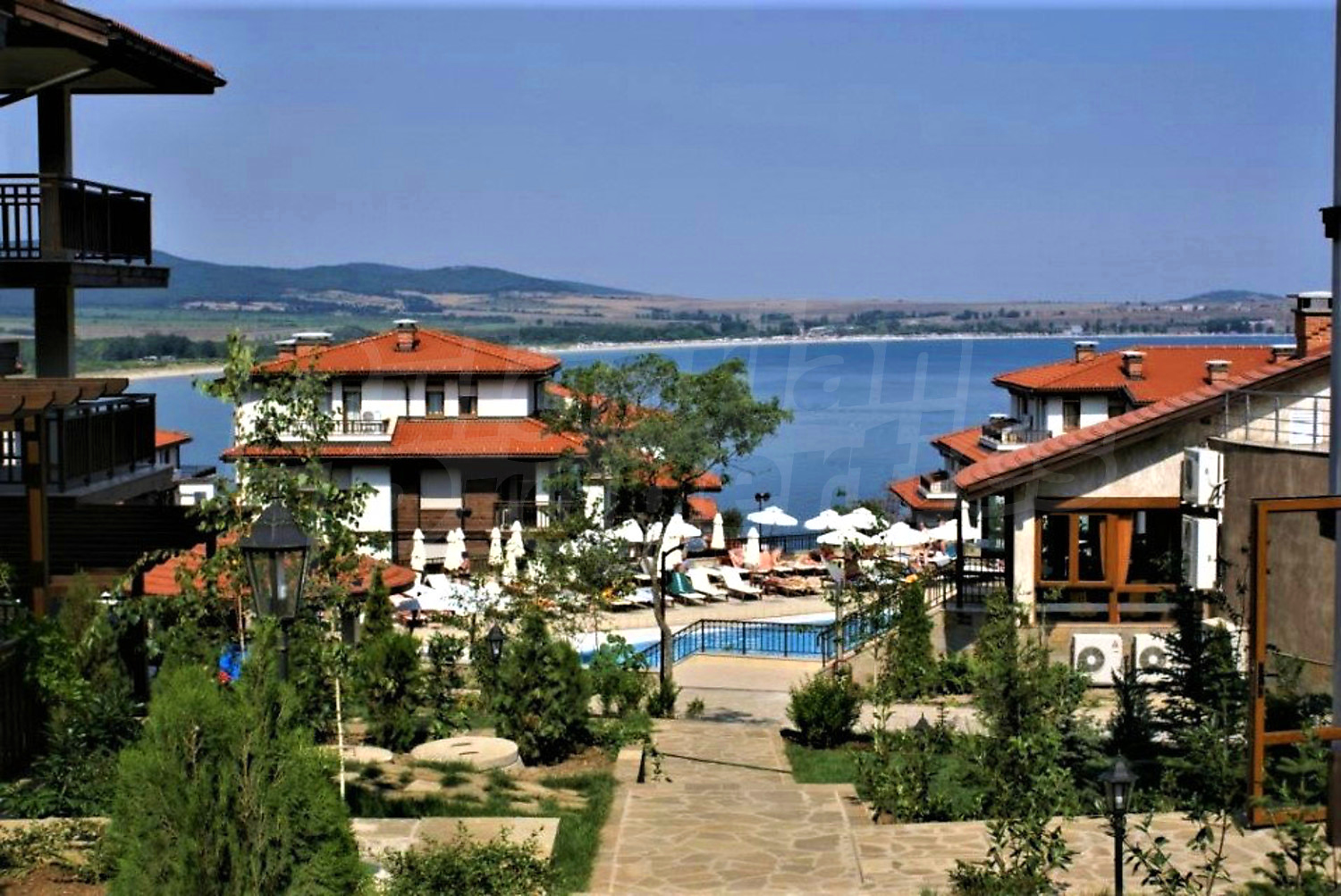 One-bedroom apartment in "Santa Marina" complex - Sozopol. Holiday home in a gated complex (since 2007) with its own swimming pools, restaurants, and attractions, as well as its own beach for the owners and guests of the complex. Located on the 2nd floor. It offers a splendid view of the bay of Zlatna Ribka Beach and the central pool of the complex.