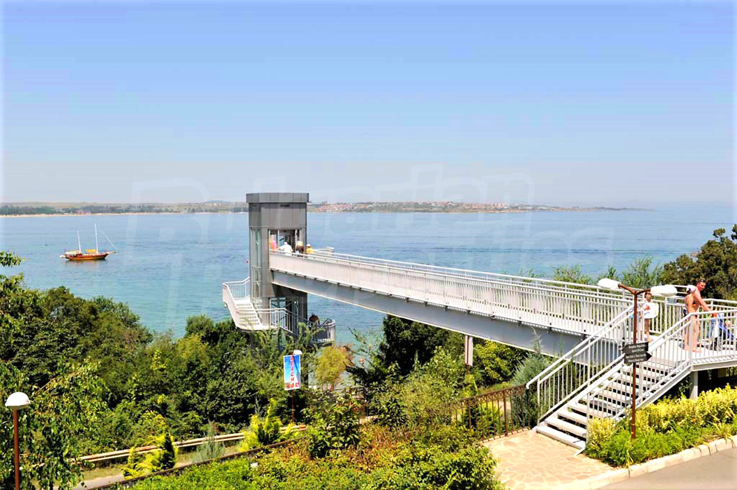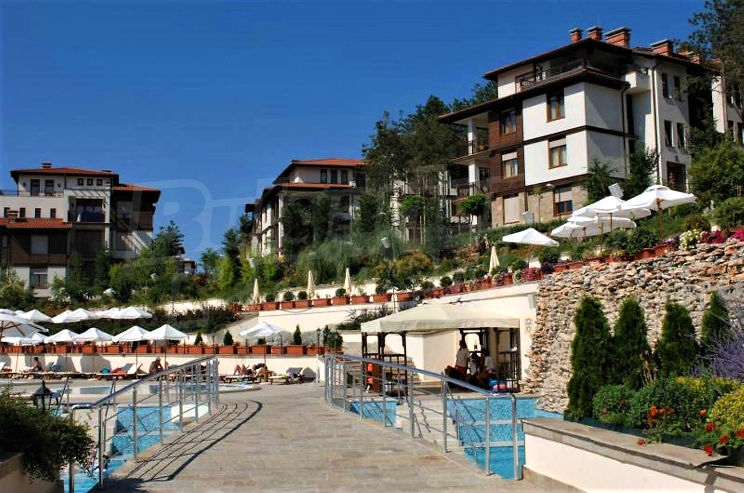 One-bedroom apartment in "Santa Marina" complex - Sozopol. Holiday home in a gated complex (since 2007) with its own swimming pools, restaurants, and attractions, as well as its own beach for the owners and guests of the complex. Located on the 2nd floor. It offers a splendid view of the bay of Zlatna Ribka Beach and the central pool of the complex.