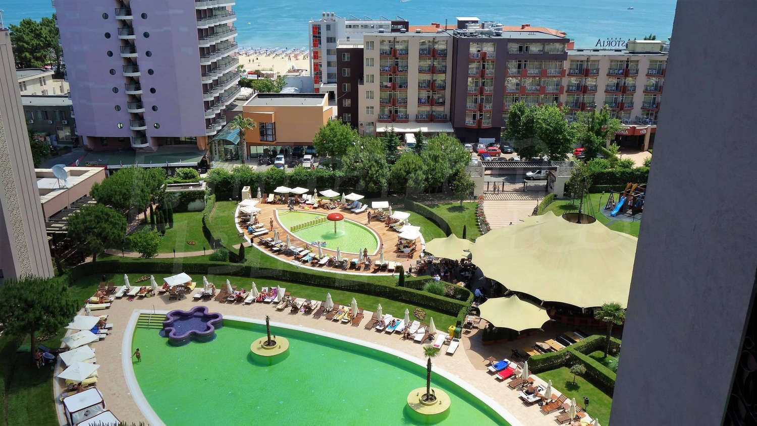 Spacious and bright, fully furnished and equipped one-bedroom apartment in Royal Beach Barcelo complex, set 150 m from the beach, in the center of Sunny Beach, 300 m to a bus stop and 30 km to Bourgas airport. The complex offers a variety of restaurants and bars, lobby bar, spa center with massages, hot tub, sauna, steam bath, Turkish bath, relaxing foot tubs, infrared sauna and gym.