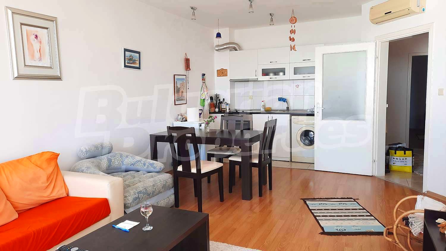 Fully furnished and equipped two-bedroom apartment with beautiful sea view in Glarus gated complex, built on a south-facing slope, giving beautiful panoramic views over the bay of Kavarna and the Black Sea. It is just a 7-8 minutes stroll to the beach. The site itself is in an exclusive quiet area, with natural surroundings and woodland to the rear and sides, set near 3 new professional golf courses and to port facilities, which is a prerequisite for the development of yacht tourism. The Kaliakra Cape is only 15 km north of Kavarna and one of the most beautiful and old botanical gardens in Bulgaria - the one in Balchik - just 20 km to the south.