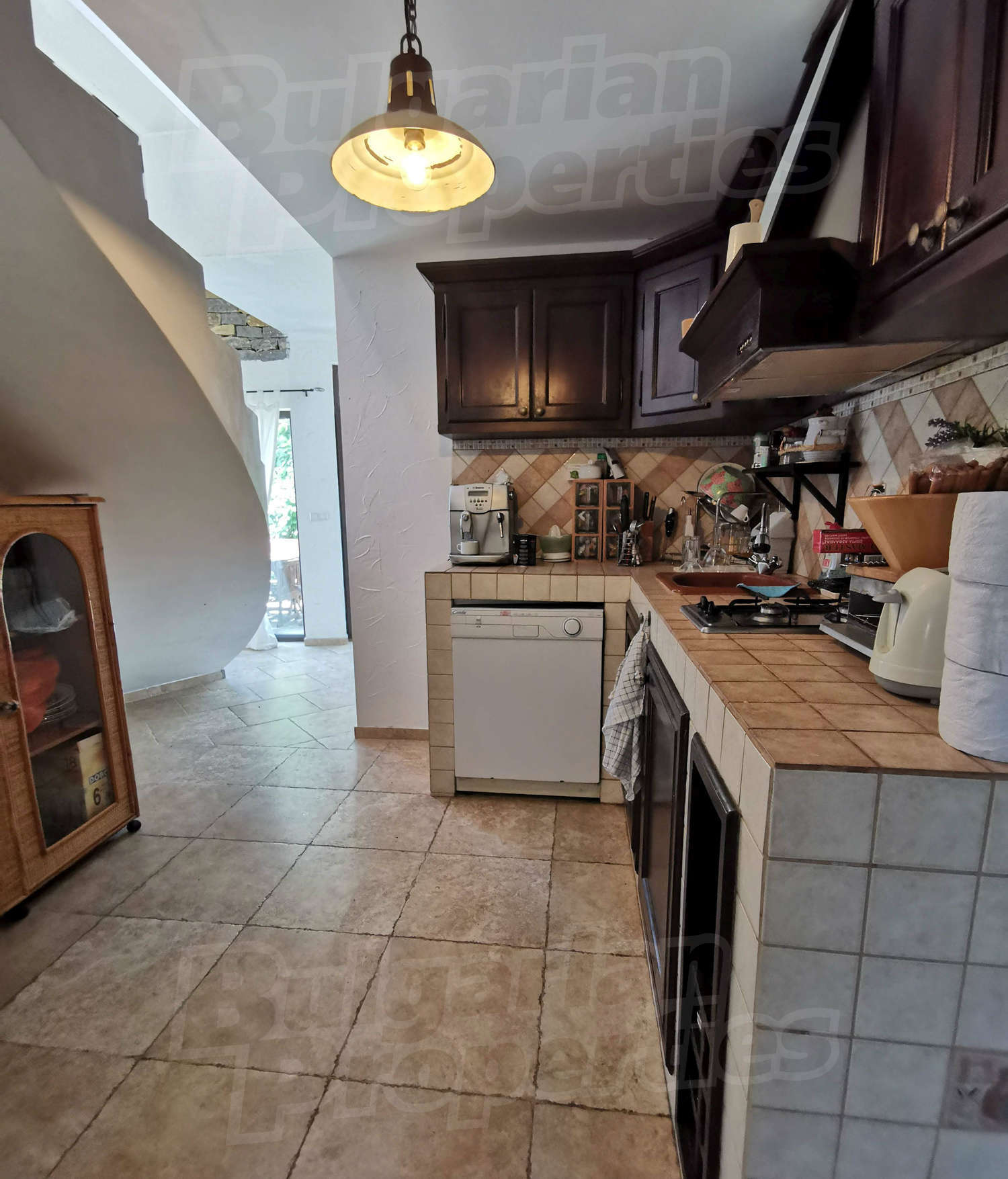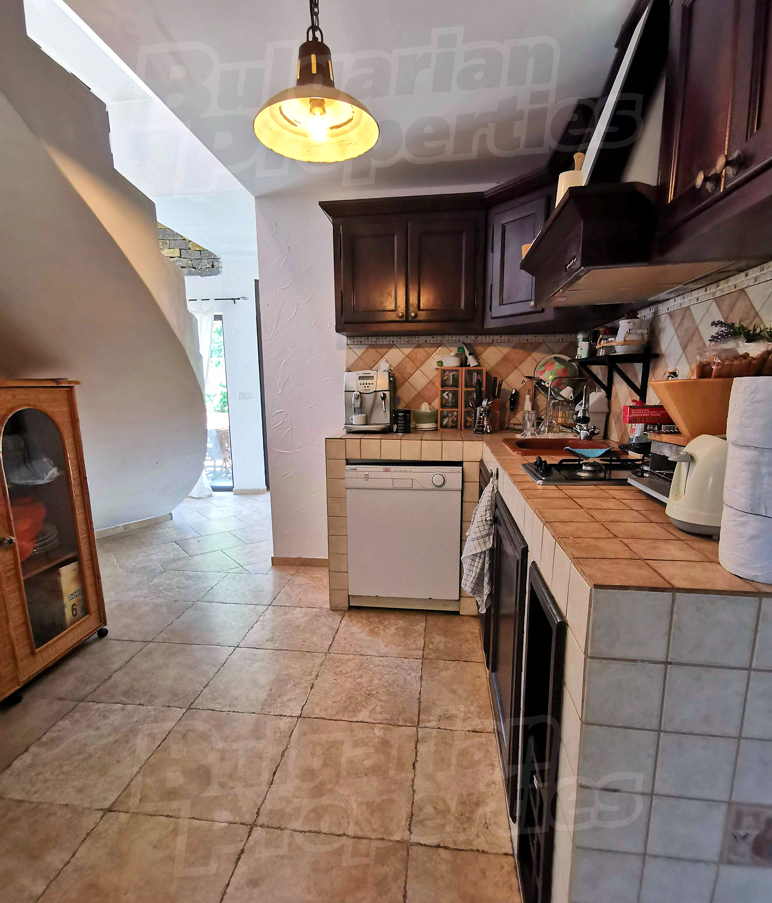 The two-storey building has an area of 159.87 sq.m., maintained and landscaped yard - 350 sq.m. It has 2 parking spaces, an outdoor pool and a lounge area, as well as possibility for setting an outdoor barbecue area and an alfresco dining area. In the back of the yard there is a summer kitchen and laundry room for washing machine.