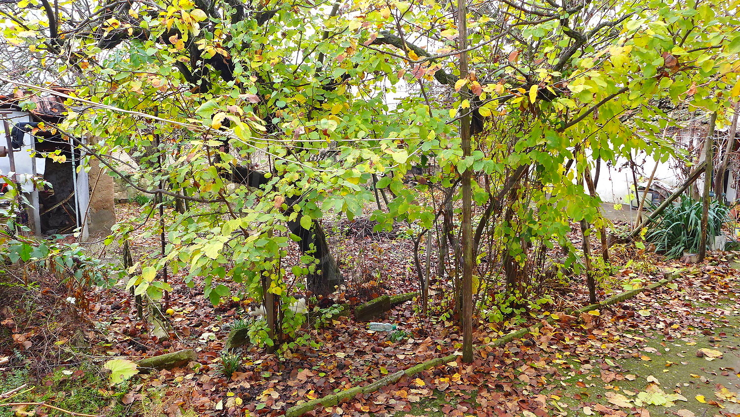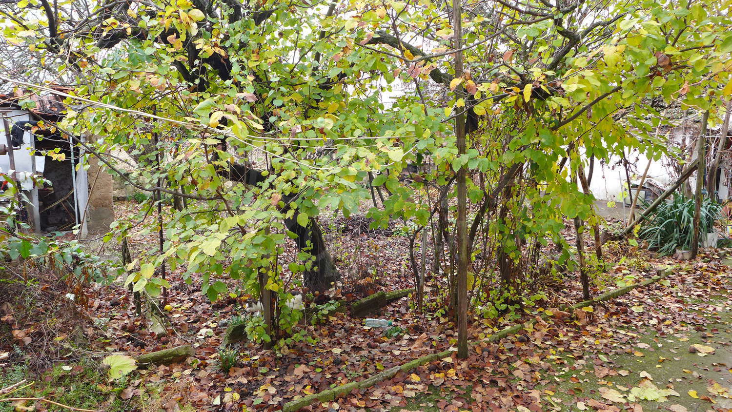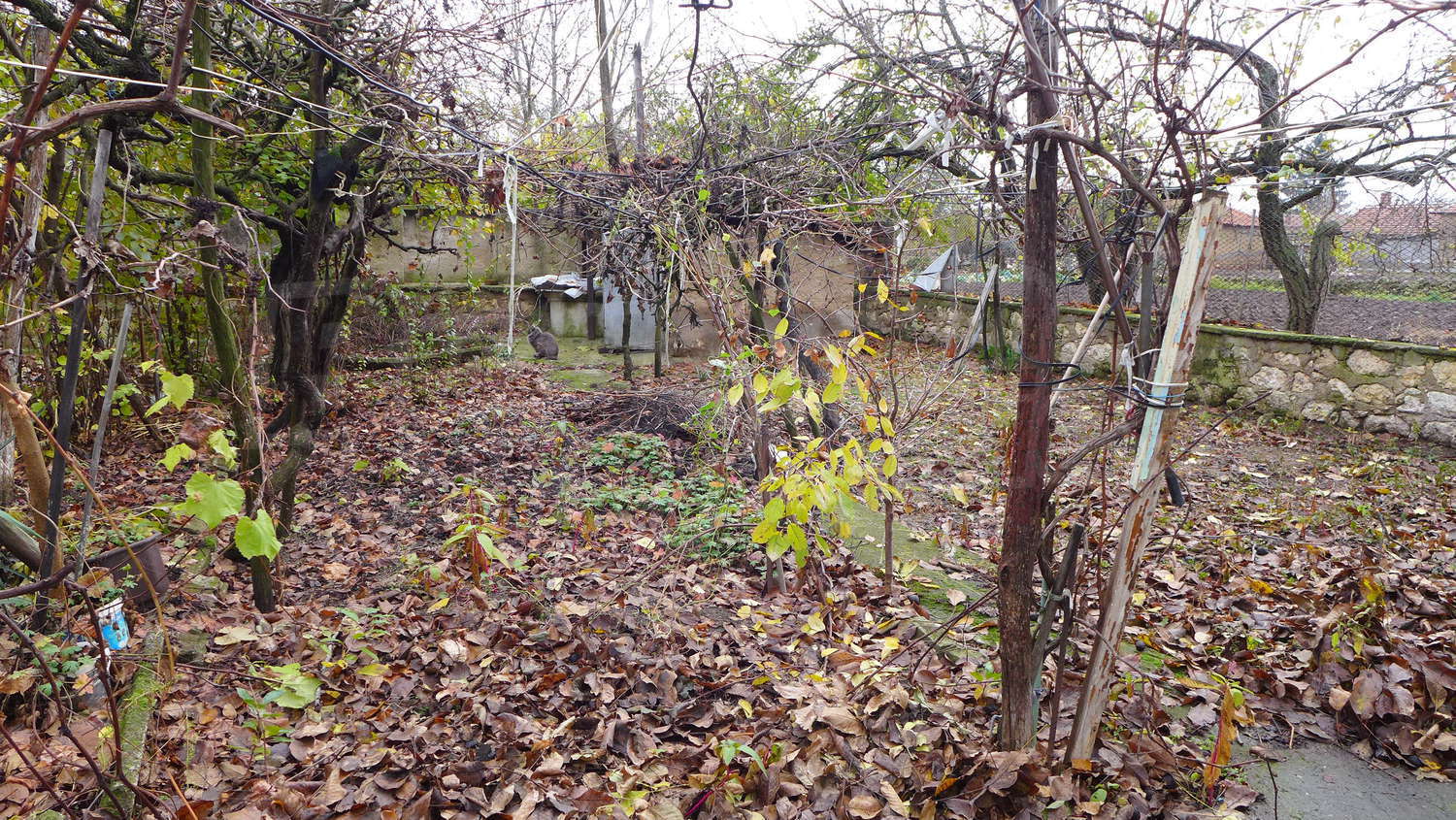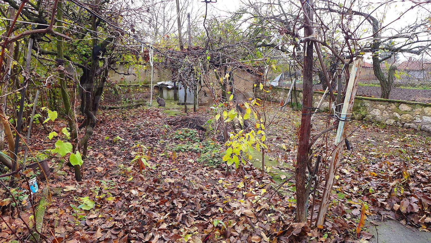 The garden is planted with fruit trees, a walnut tree, a trellis vine, flowers. There is also a well for the irrigation.