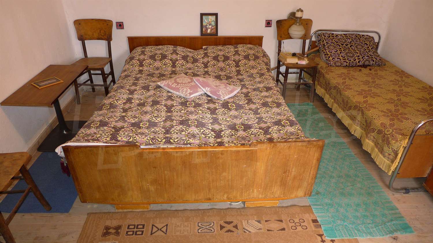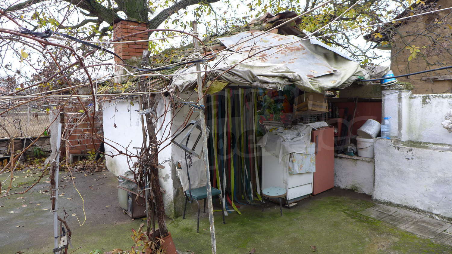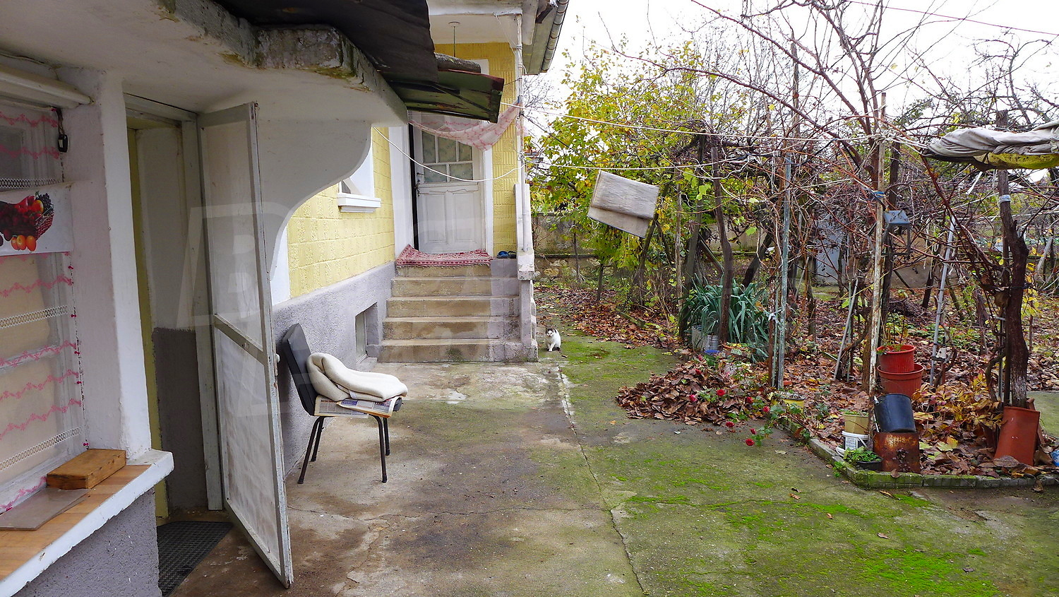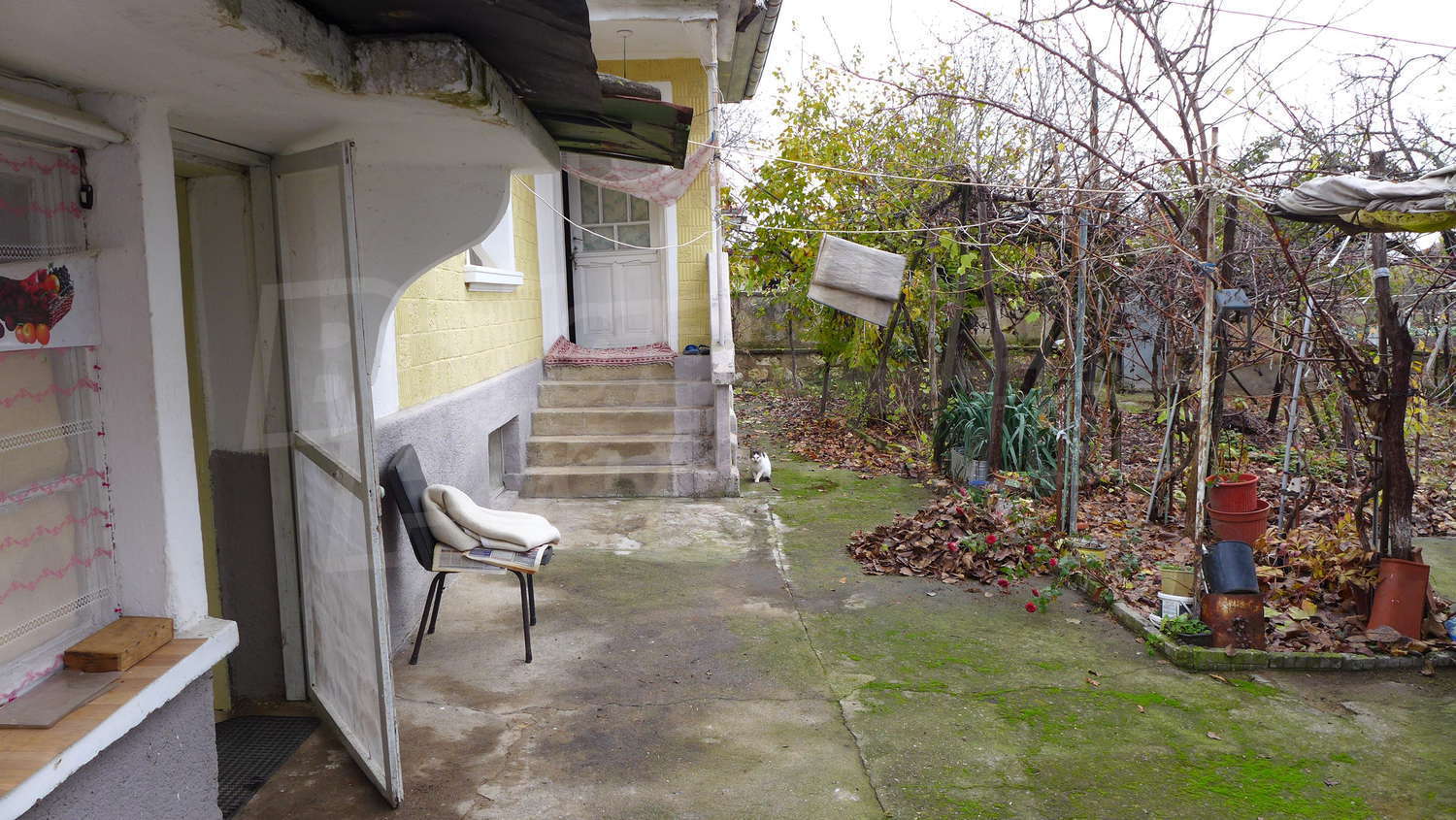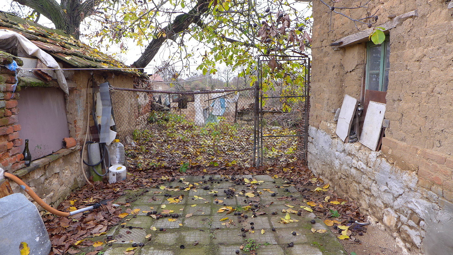 The garden is planted with fruit trees, a walnut tree, a trellis vine, flowers. There is also a well for the irrigation.