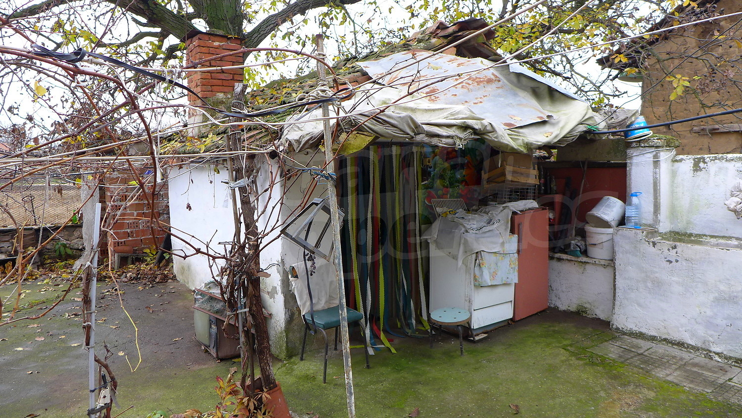 The garden is planted with fruit trees, a walnut tree, a trellis vine, flowers. There is also a well for the irrigation.