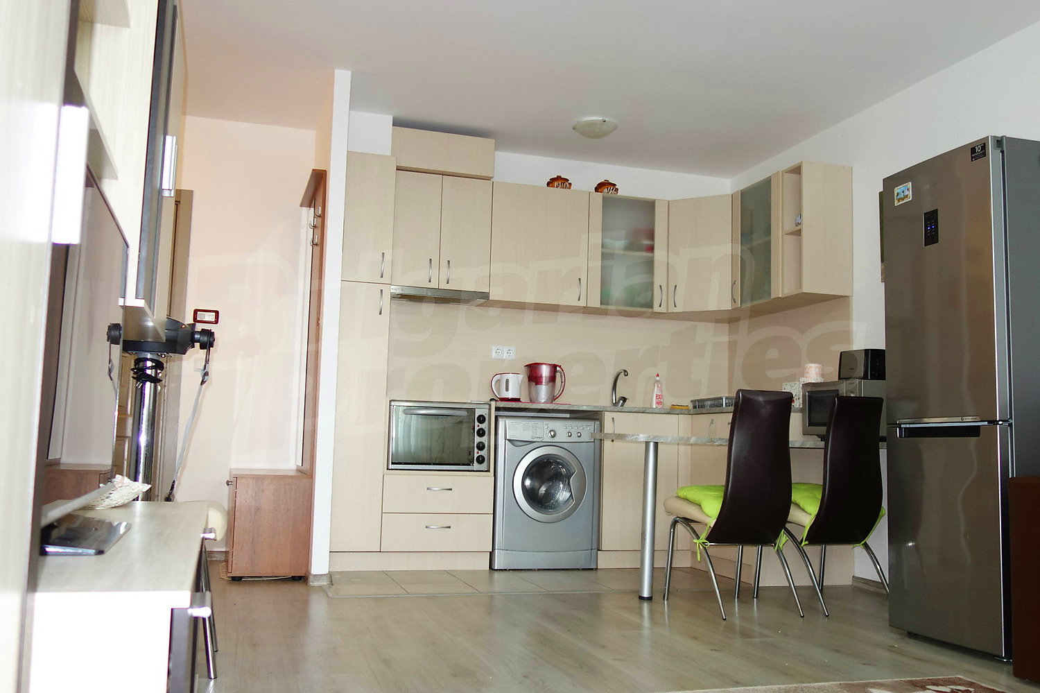 The property is fully equipped with household appliances and furniture, there is air conditioning in the living room - included in the price. The apartment has cable and internet.