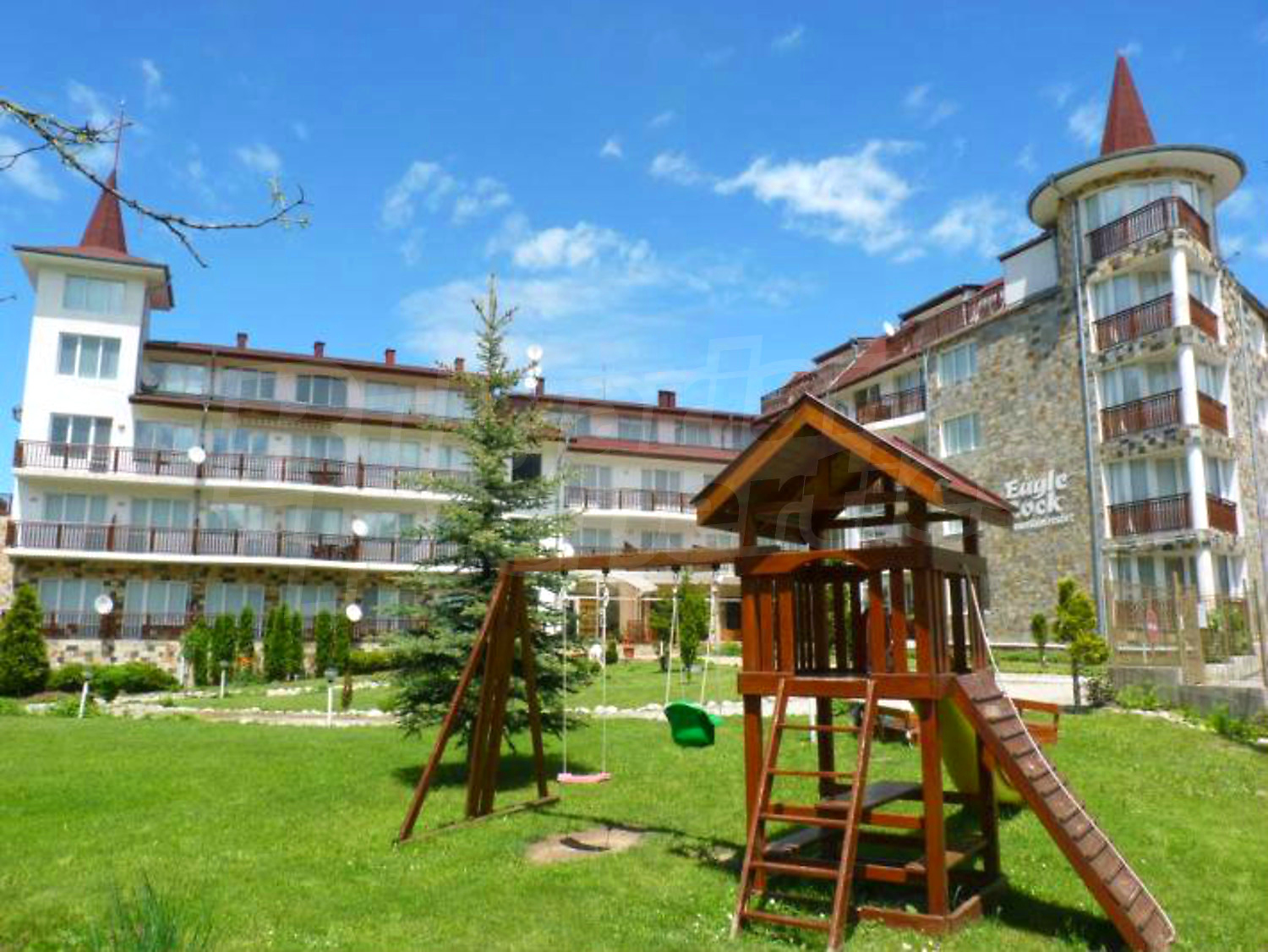 The complex has been operating since 2008 and it consists of 84 apartments. It has a spacious leisure time area of 550 sq.m. with swimming pools for adults and children, fitness, massages and nice terrase for sunbathing, cozy restaurant, table tennis and snooker, free Wi-Fi in the reception and garden, library, parking lot, beautiful greenery, 24-hour security and reception. There is sauna, steam bath and bicycle rental for an extra charge. The maintenance fee is 10 euros per m2, paid in two annual installments.
