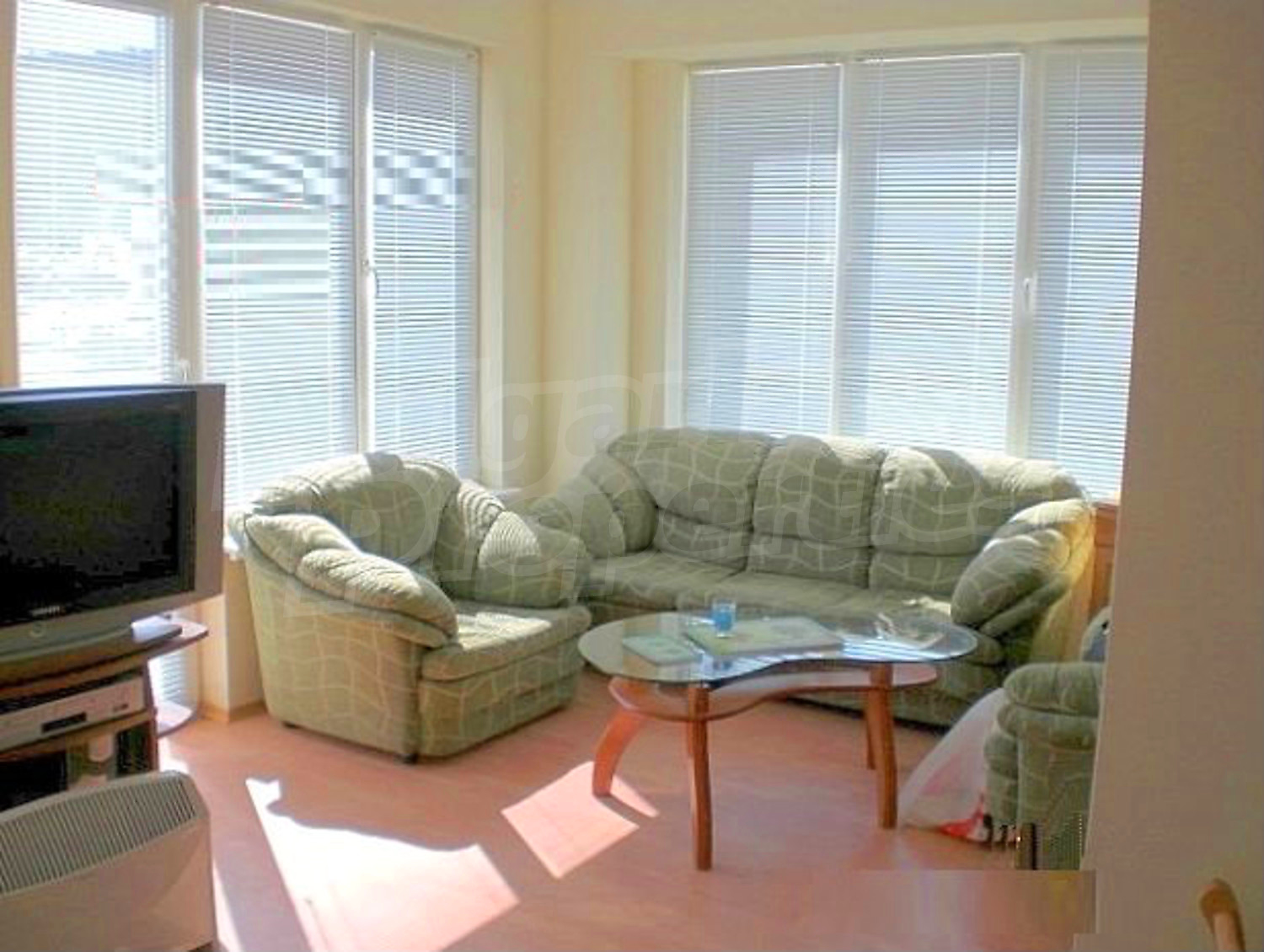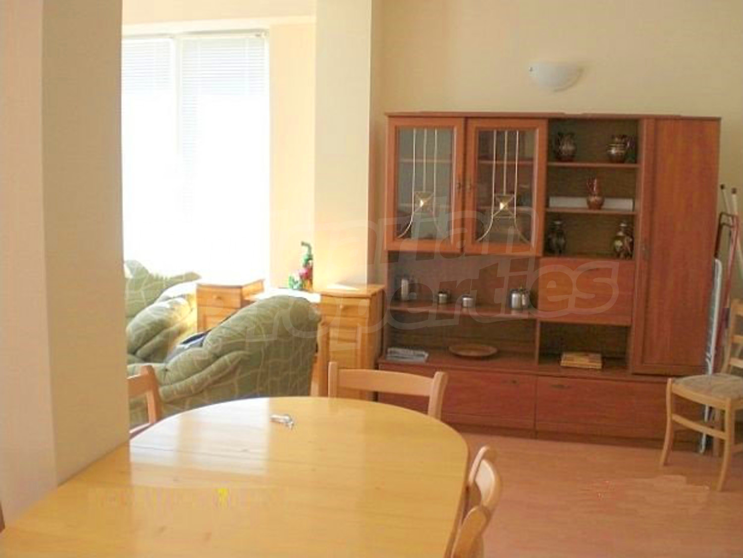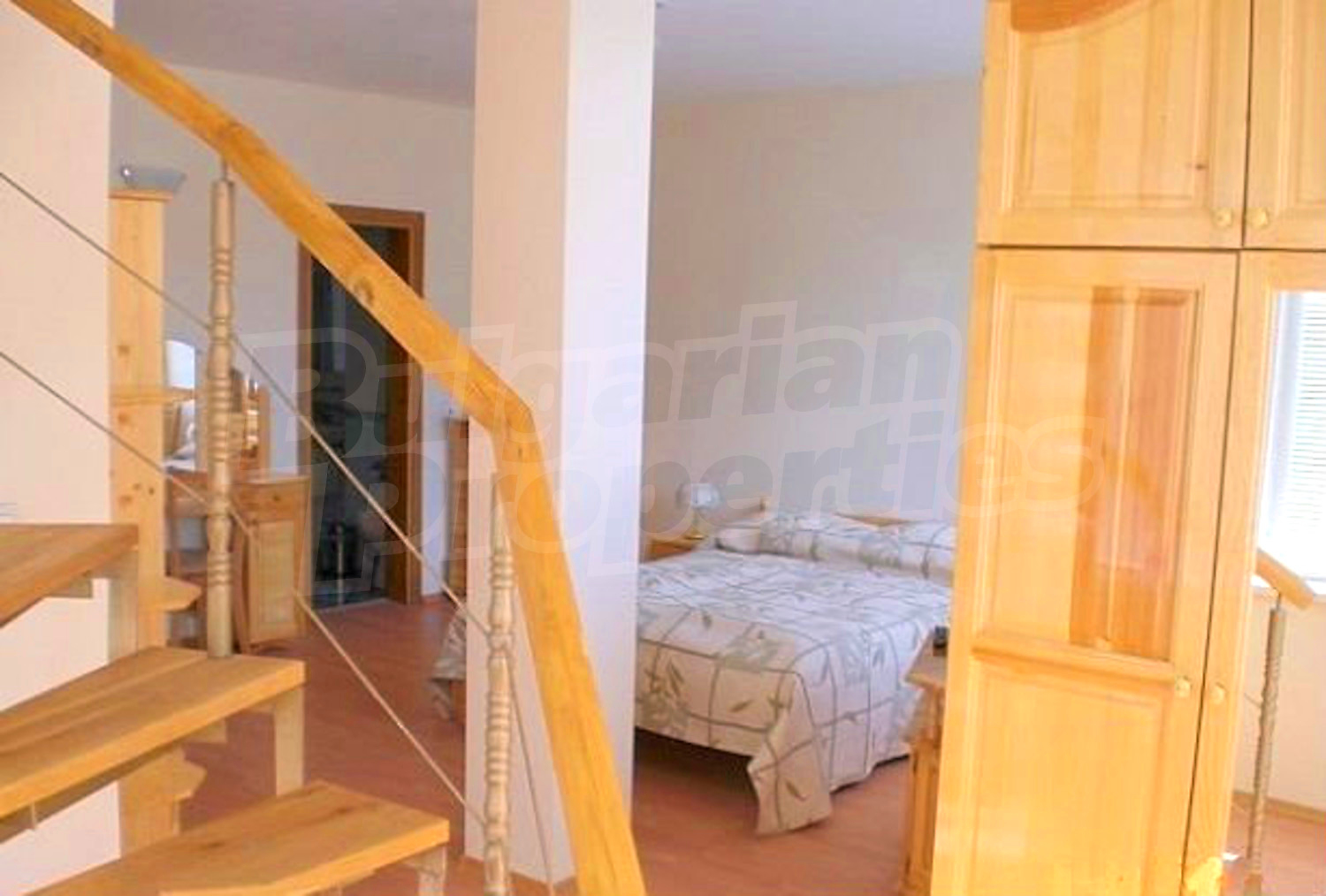 The flooring is with laminate and the window frames are PVC.