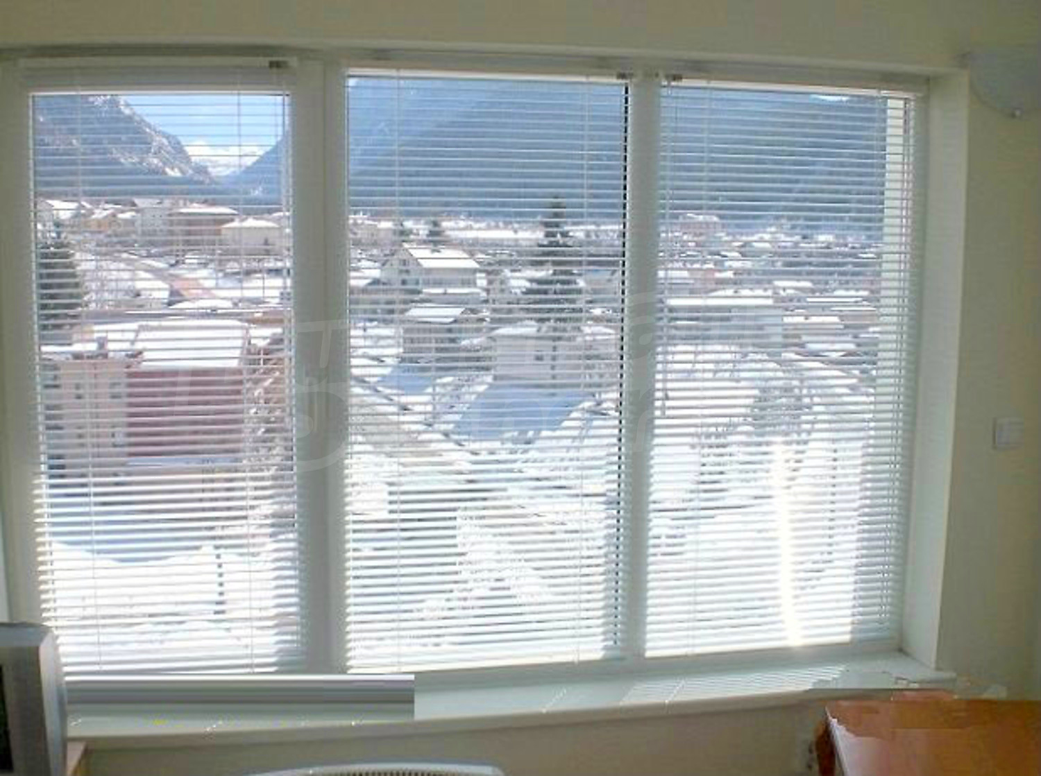 The flooring is with laminate and the window frames are PVC.