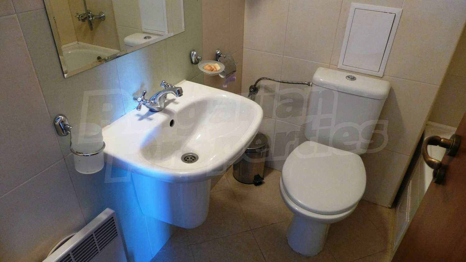 The modern kitchen includes an oven, double hob, extractor fan, sink, fridge, washing machine, kettle, toaster. Living room - a double sofa, 2x Arm Chair, Coffee table, Tv, DVD player, Tv Stand, telephone, wi-fi, Dining table, 4 dining chairs, curtains. Bedroom 1 – a double bed, 2x bedside cabinets, 2x double wardrobe, dressing table with mirror, curtains. Bedroom 2 - 2x single beds, bedside cabinet, double wardrobe, chest of drawers with mirror, curtains. Bathroom with toilet 1- a sink, mirror and water heater. Bathroom with toilet 2 - a bathtub & shower, sink, mirror. The property is wired for telephone, cable TV, internet. The heating is by electric radiators.
