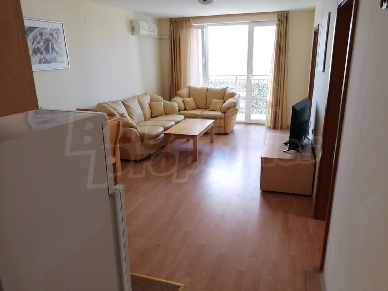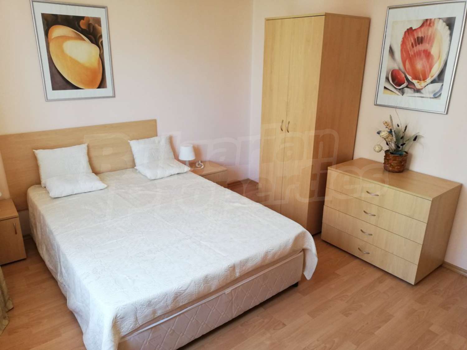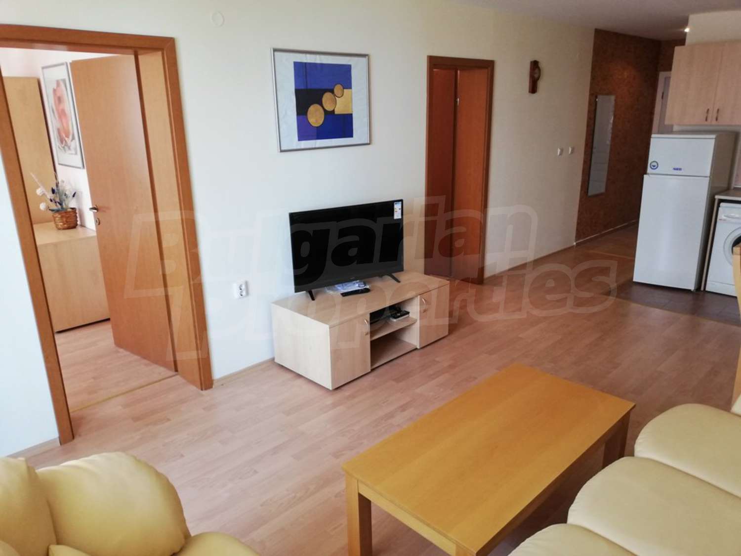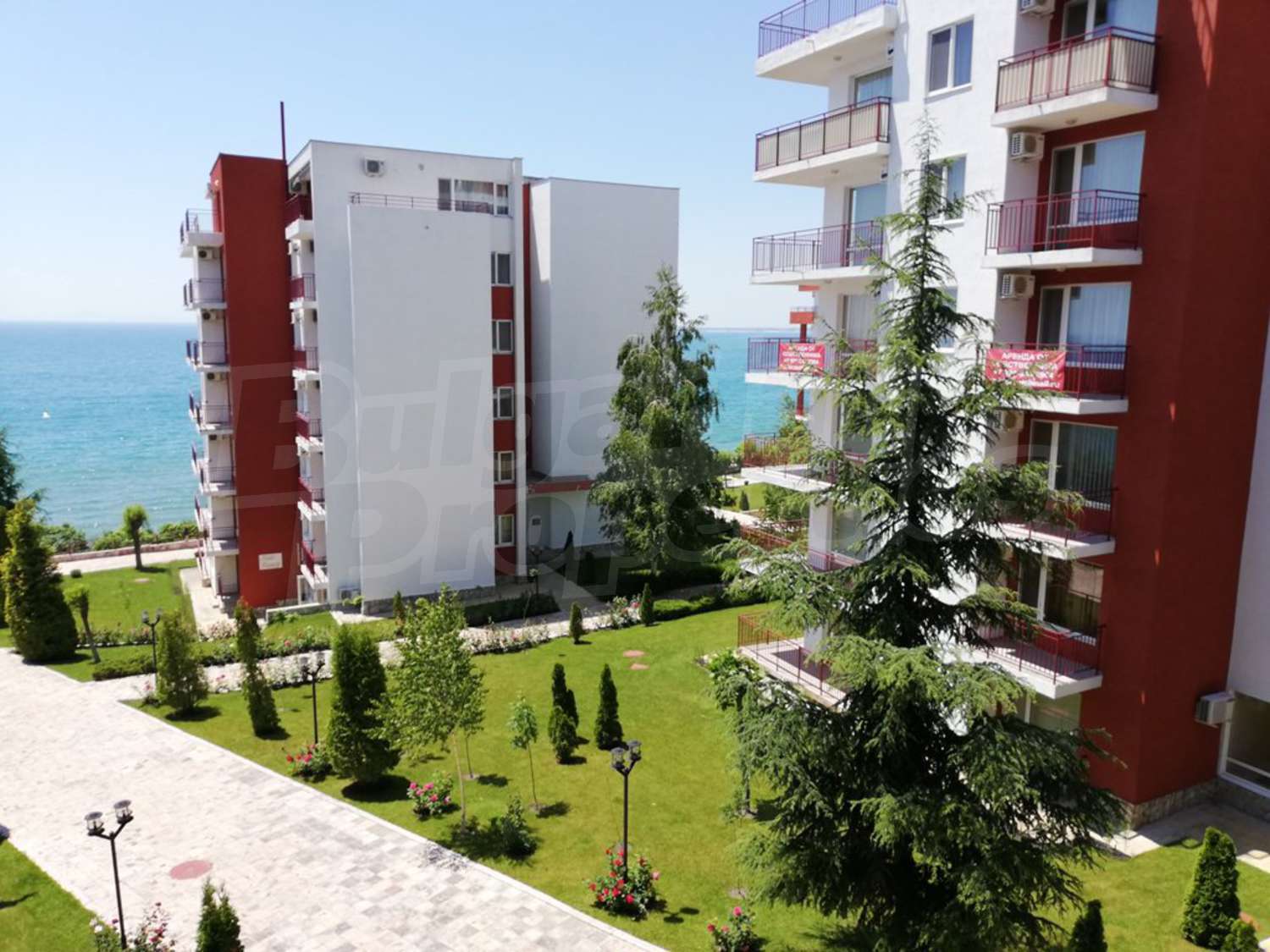 Furnished two-bedroom apartment with magnificent sea view located on the first line of the sea (20 m) and the beach of Panorama Fort Noks complex, 8 km from Sunny Beach. The complex is located in the quiet and beautiful area between Sveti Vlas and Elenite resorts, directly on the beach, with gorgeous sea view overlooking Sunny Beach and the old town of Nessebar, only 1 km from Marina Dinevi.