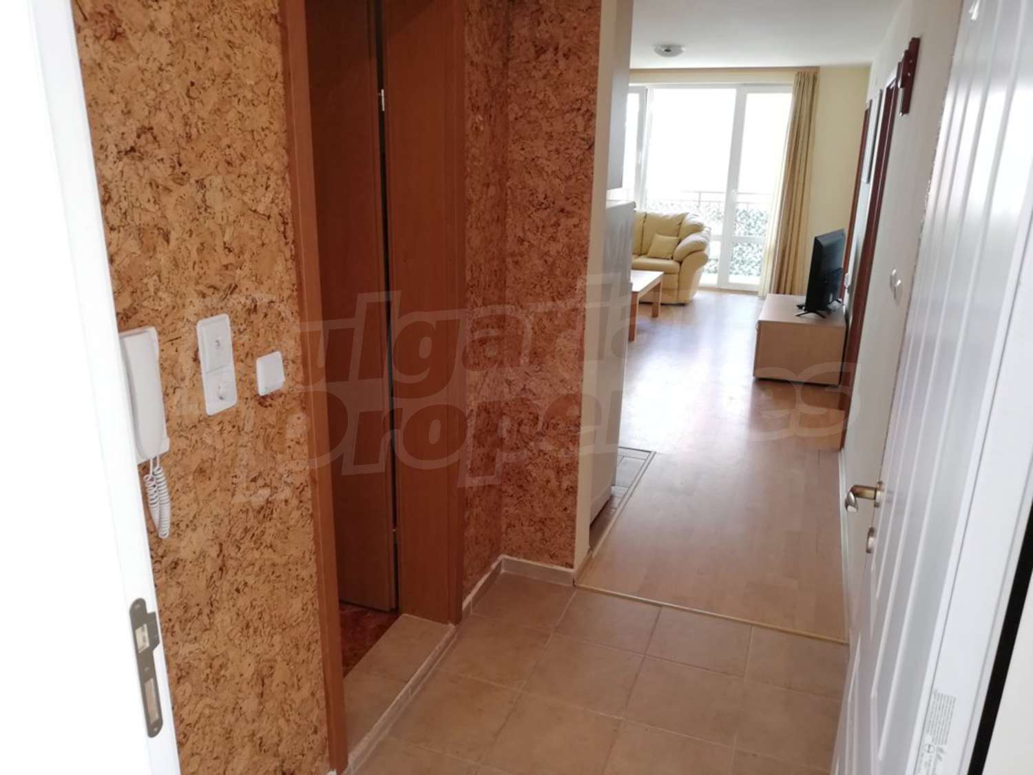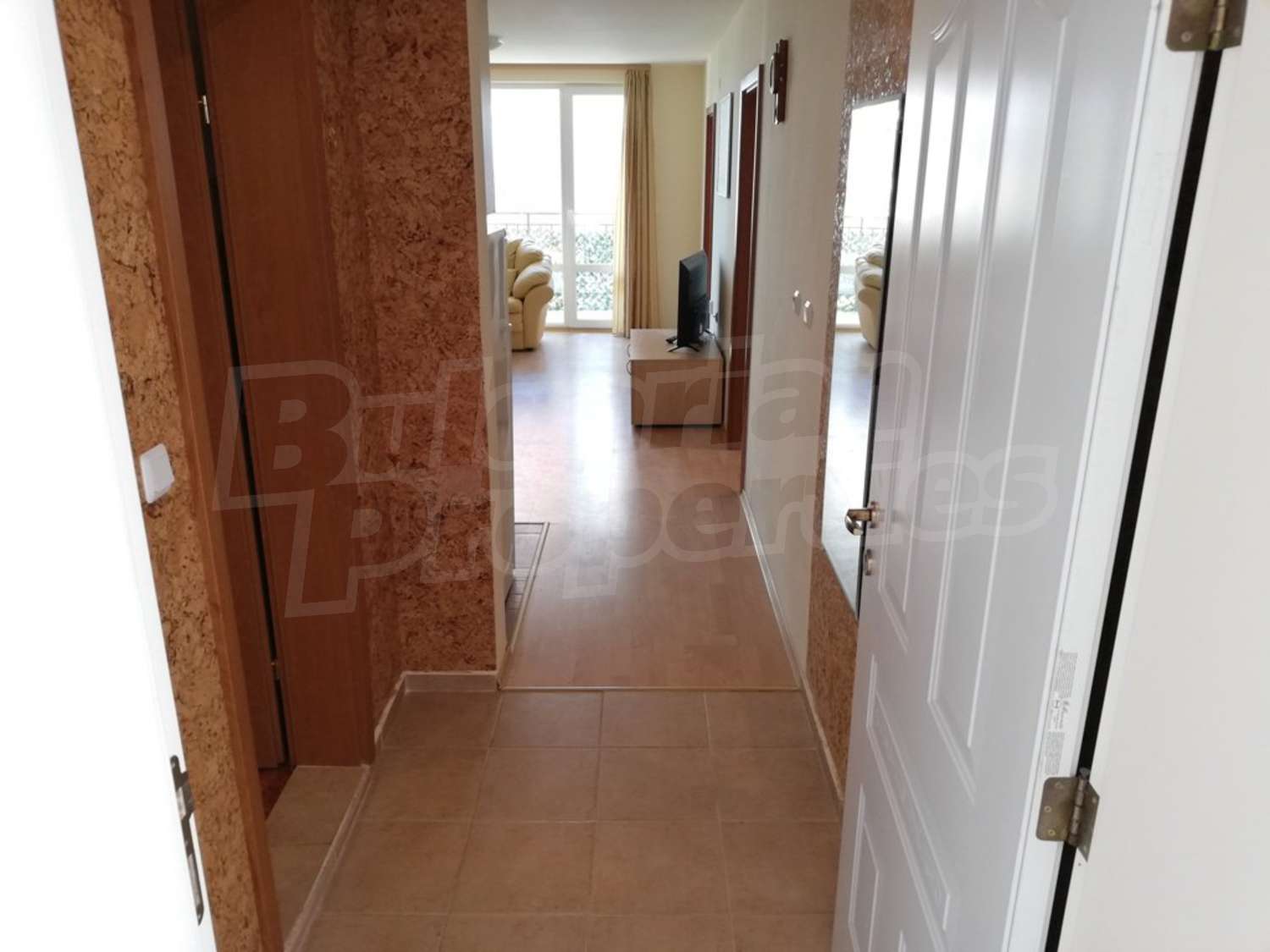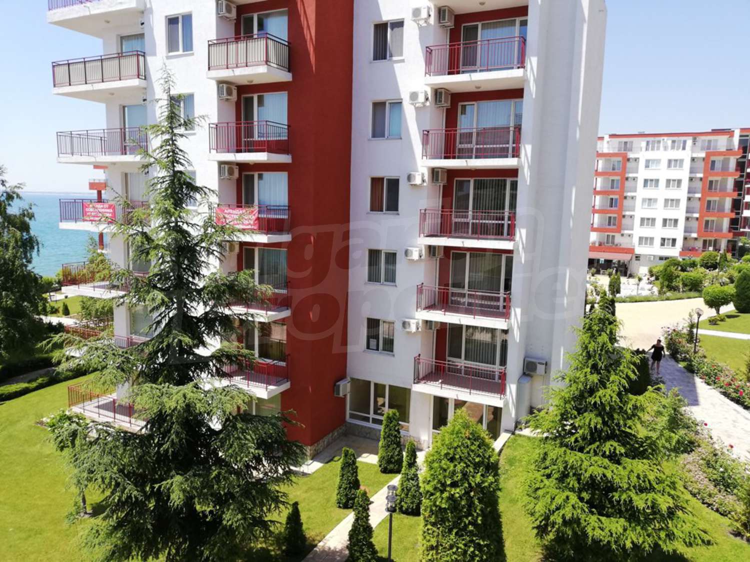 Furnished two-bedroom apartment with magnificent sea view located on the first line of the sea (20 m) and the beach of Panorama Fort Noks complex, 8 km from Sunny Beach. The complex is located in the quiet and beautiful area between Sveti Vlas and Elenite resorts, directly on the beach, with gorgeous sea view overlooking Sunny Beach and the old town of Nessebar, only 1 km from Marina Dinevi.