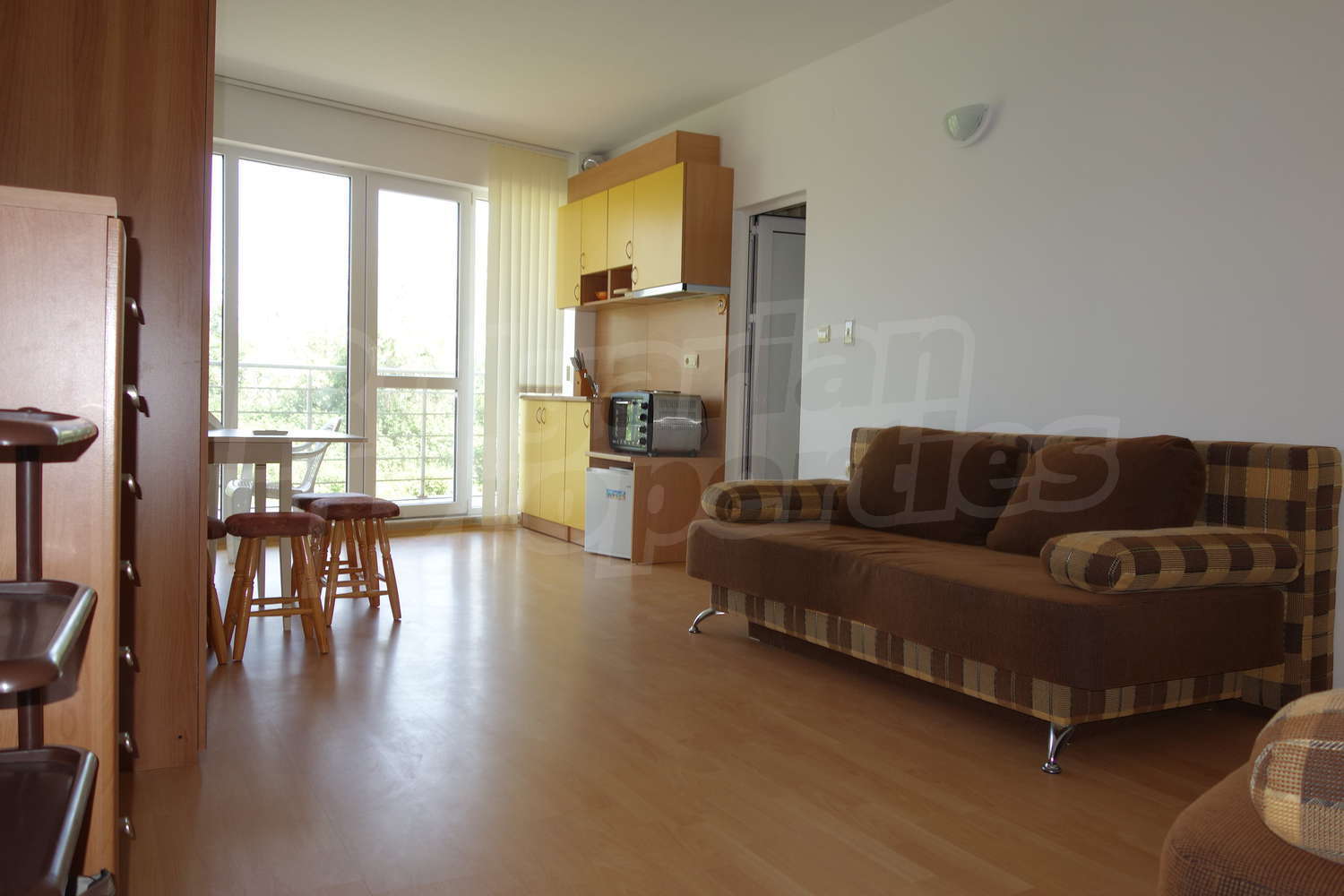 Fully furnished studio in a quiet and green location, 150 meters from the beach in Byala. The apartment is part of an excellently maintained building with year-round living families. The beach is two minutes from the building and nearby restaurants and grocery store.