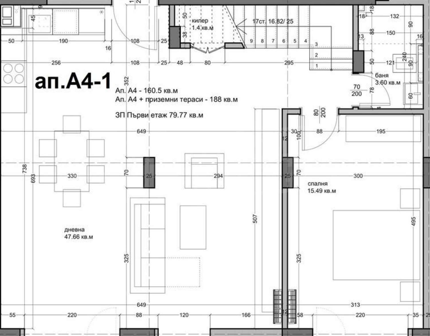The apartment is located on the 1st floor of a total of 5, serviced by a modern hydraulic lift. The net area of the property is 160.50 sq.m. and a large terrace of 27.50 sq.m.
