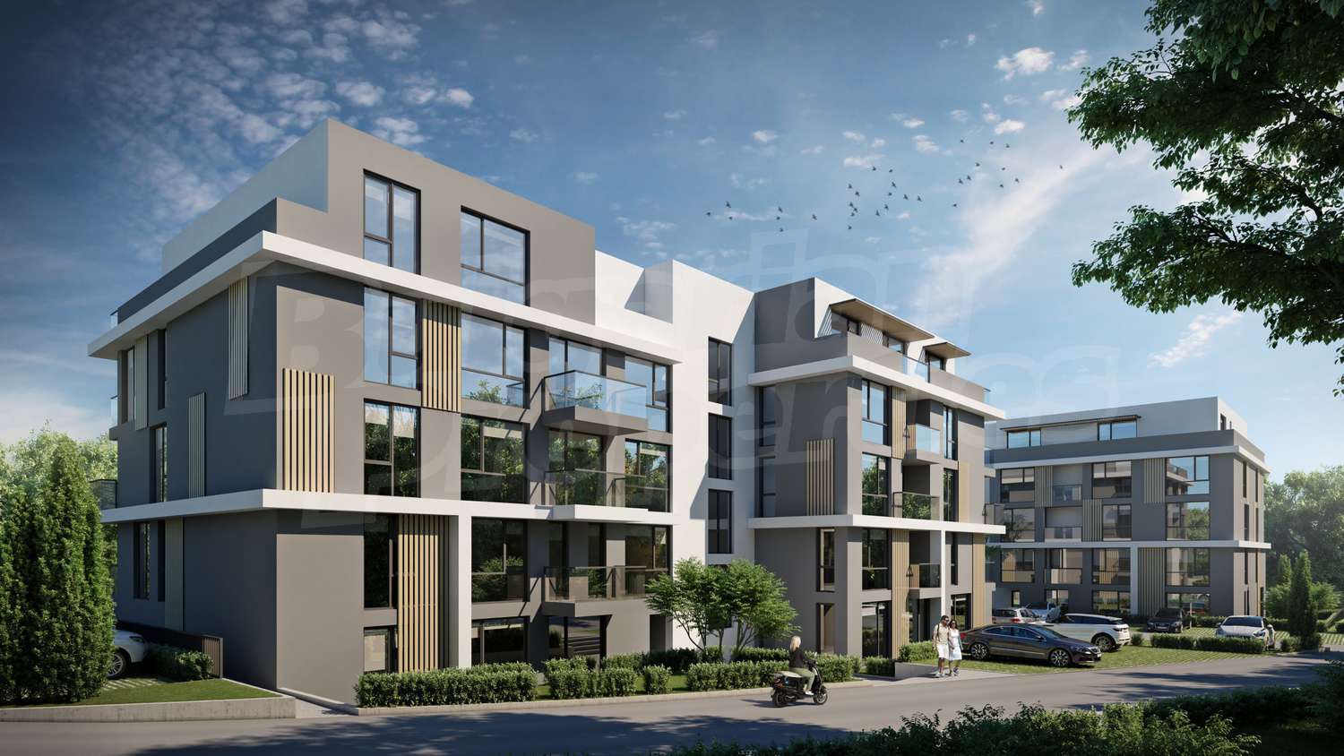 The complex has a total area of 3645 square meters and consists of two five-storey residential buildings (A and B). A swimming pool, a children's playground and a relaxing gazebo are built in the yard.