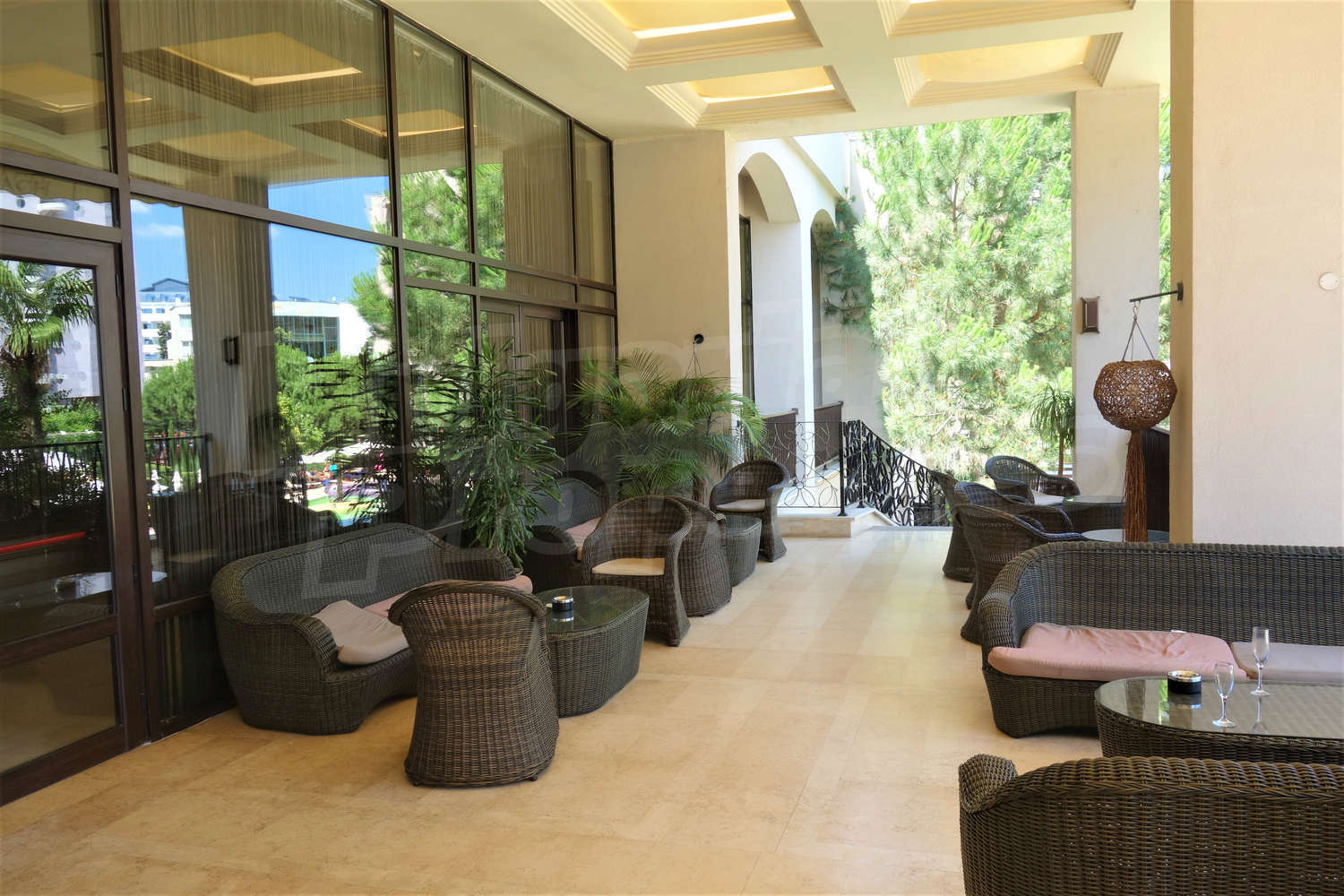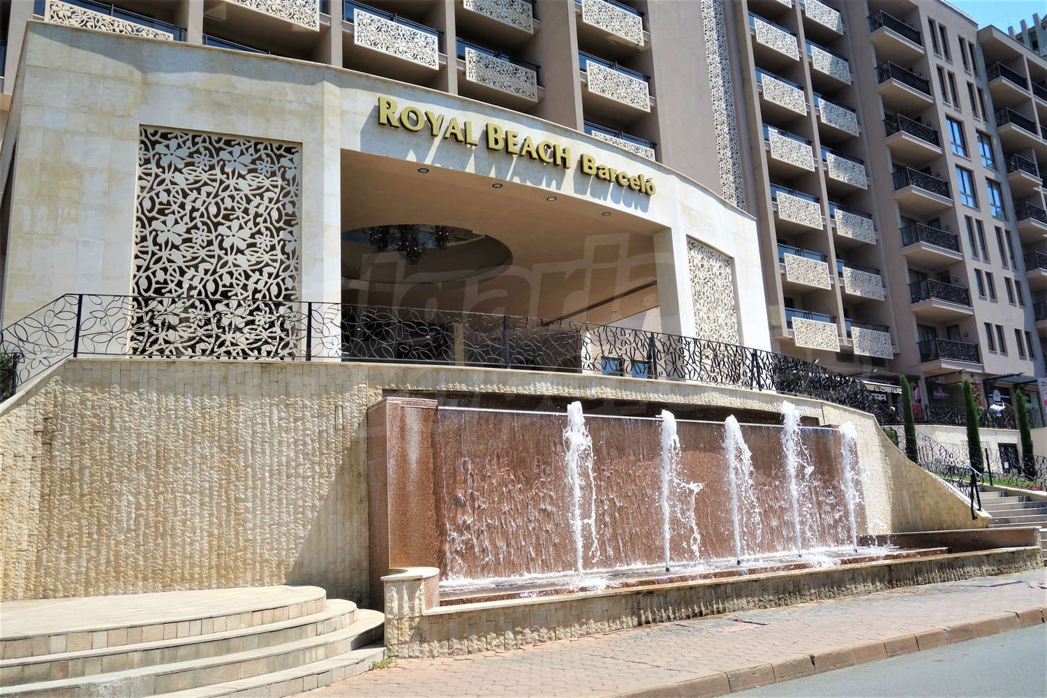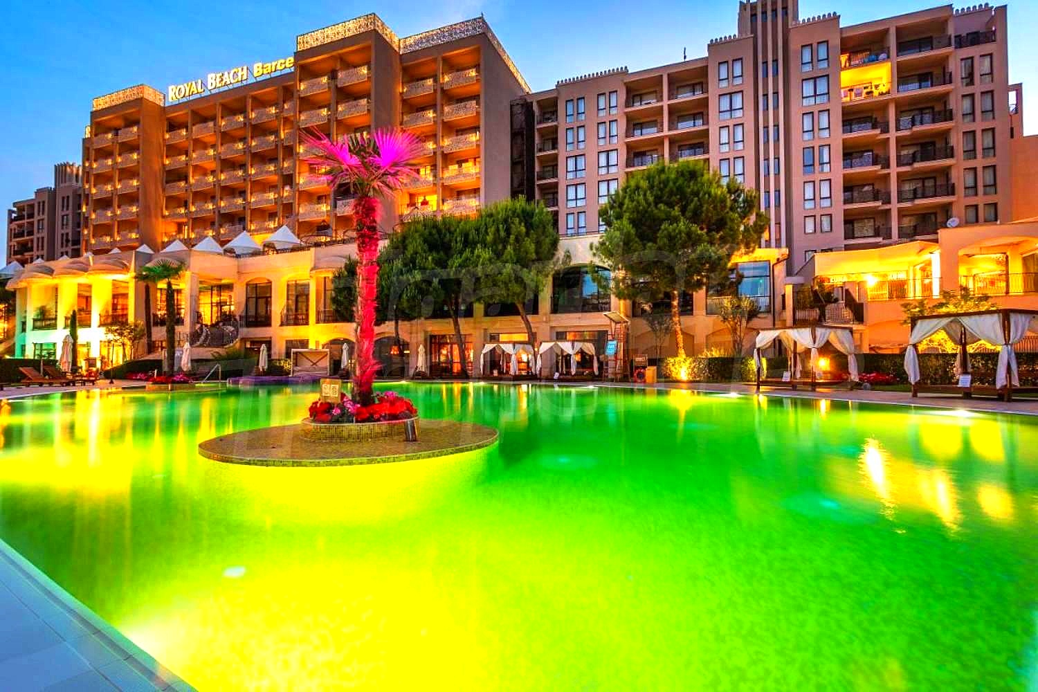 Apart-Hotel Royal Beach Barcelo is built to the modern construction designs, of high quality materials, occupying a large space - gardens of 9000 sq.m. and swimming pools (1700 sq.m.), which provide pleasant feeling of space, freedom and bring enjoyment. Here you will find the most modern services and amenities: Internet cafe, Wi-Fi, stores, POS terminal, ATM, money exchange, car rental, garages, beauty salon, doctor, room service, laundry, ironing, dry cleaning, two saunas, tennis court, 3 jacuzzi, 2 solarium, Turkish bath, massage - excellent conditions for your unforgettable seaside holidays.