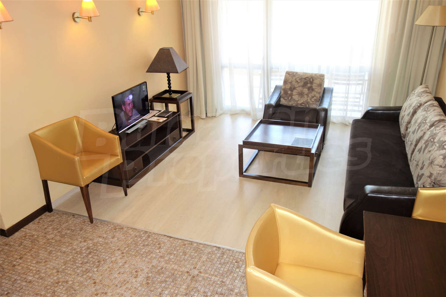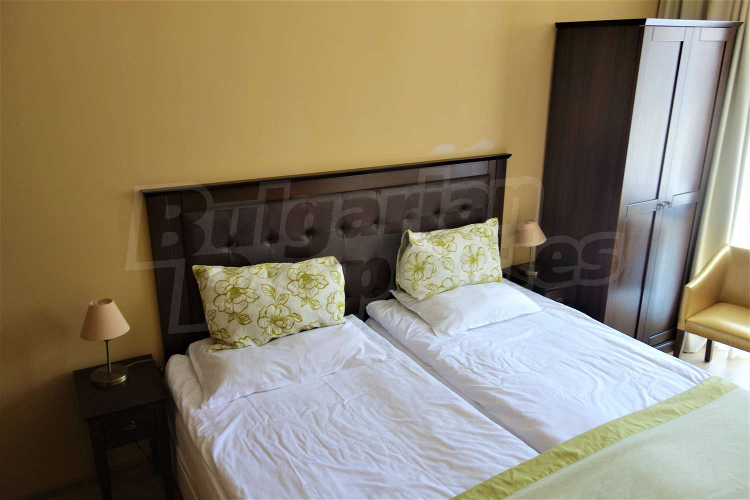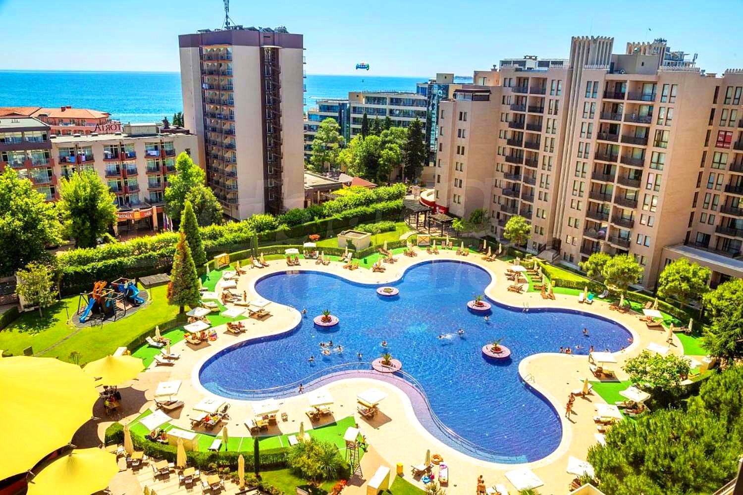 Fully furnished and equipped one-bedroom apartment with nice view of the inner yard with swimming pool of gated complex Royal Beach Barcelo, located 150 m from the beach, in the center of Sunny Beach, 300 m to a bus stop and 30 km to Bourgas airport.