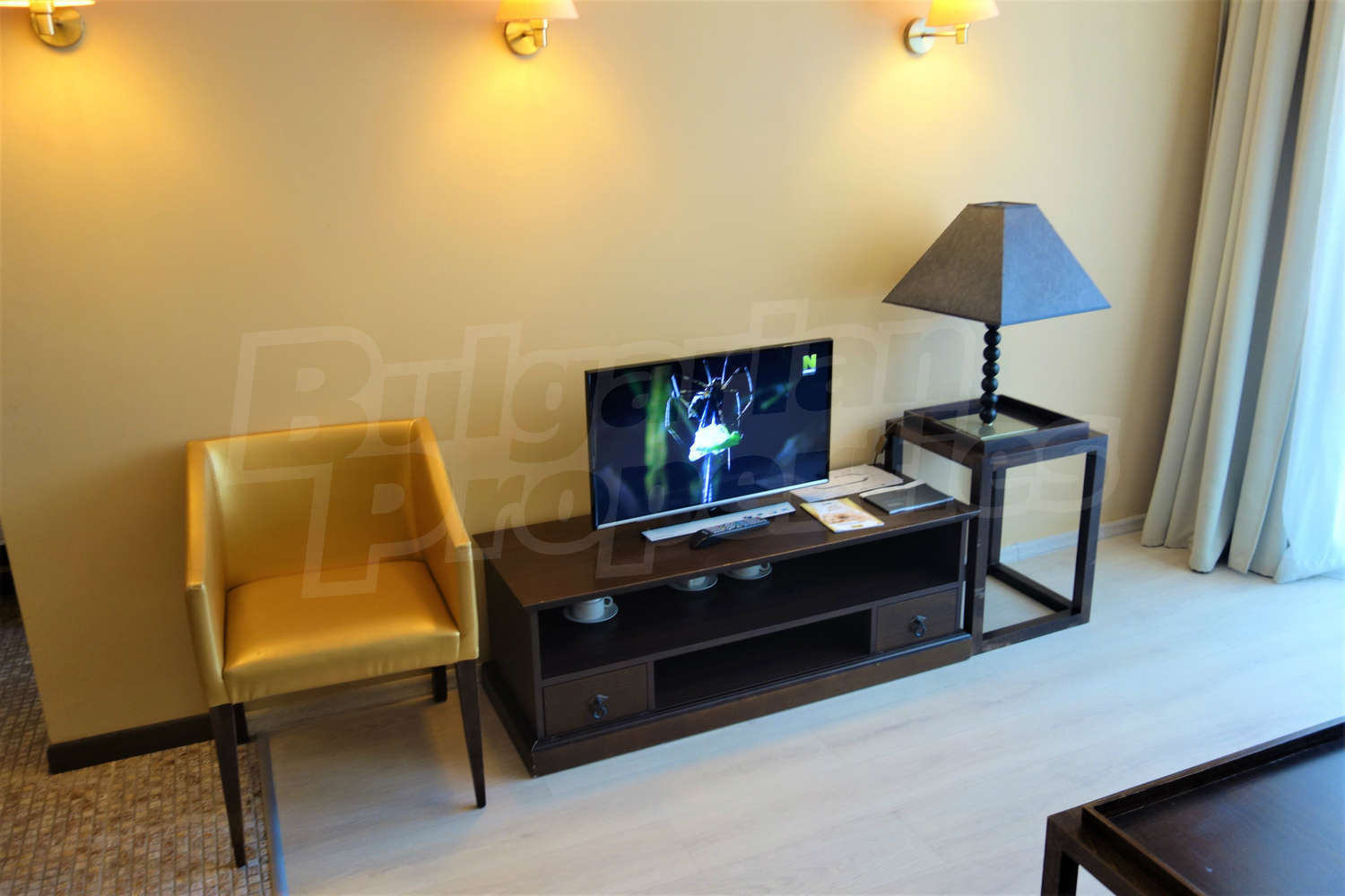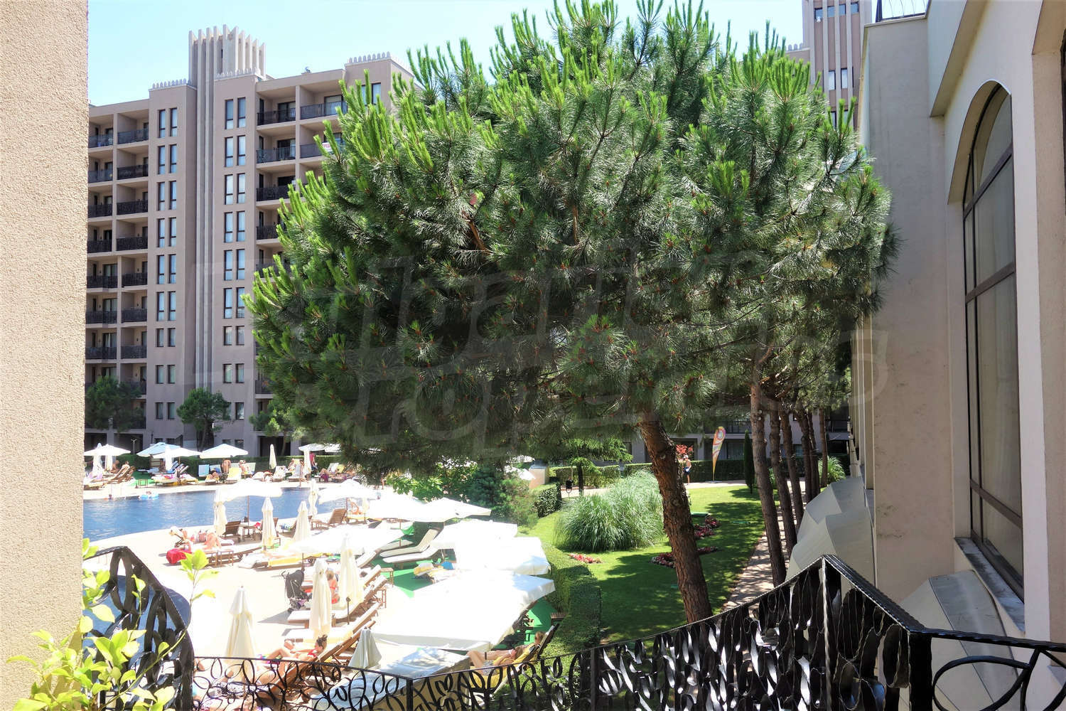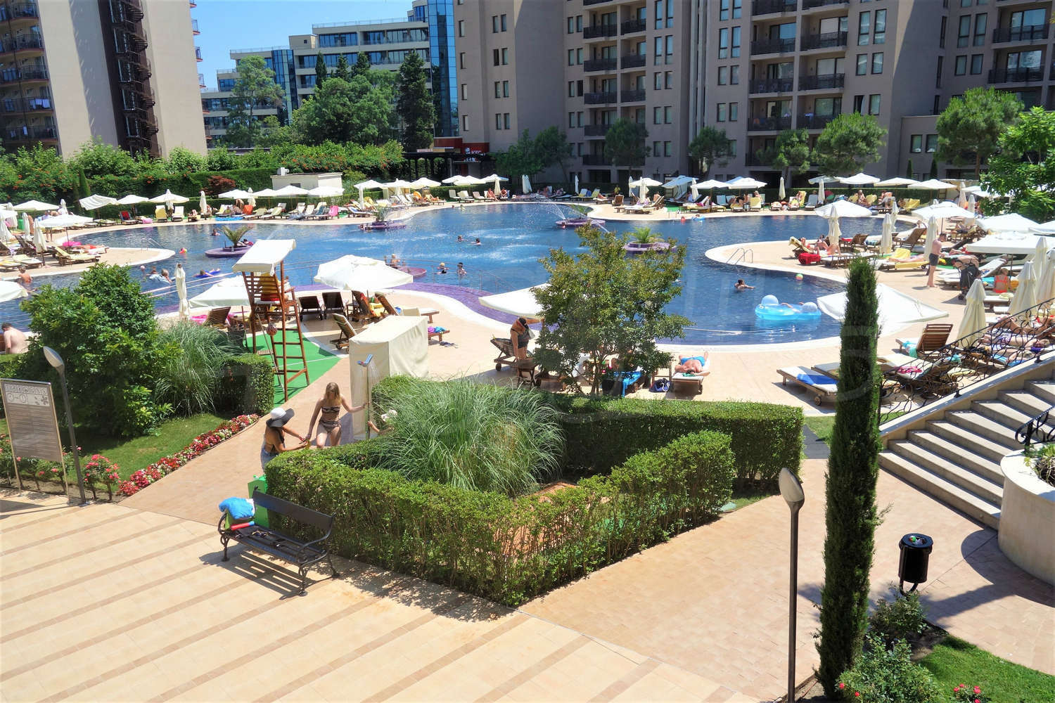 Fully furnished and equipped one-bedroom apartment with nice view of the inner yard with swimming pool of gated complex Royal Beach Barcelo, located 150 m from the beach, in the center of Sunny Beach, 300 m to a bus stop and 30 km to Bourgas airport.